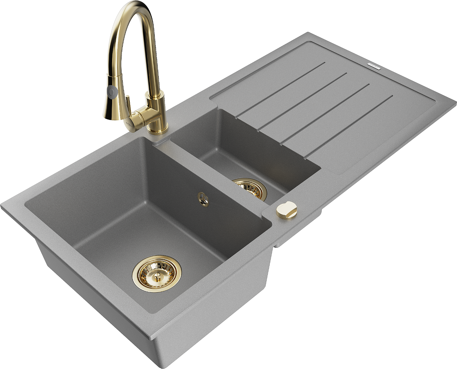 Mexen Andres гранитна мивка с 1,5 камери с отцедник и кухненски смесител Elia, сив - 6515-71-670101-50
