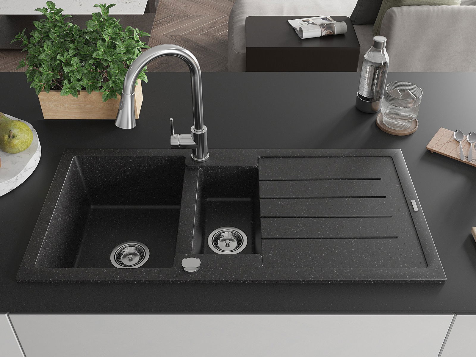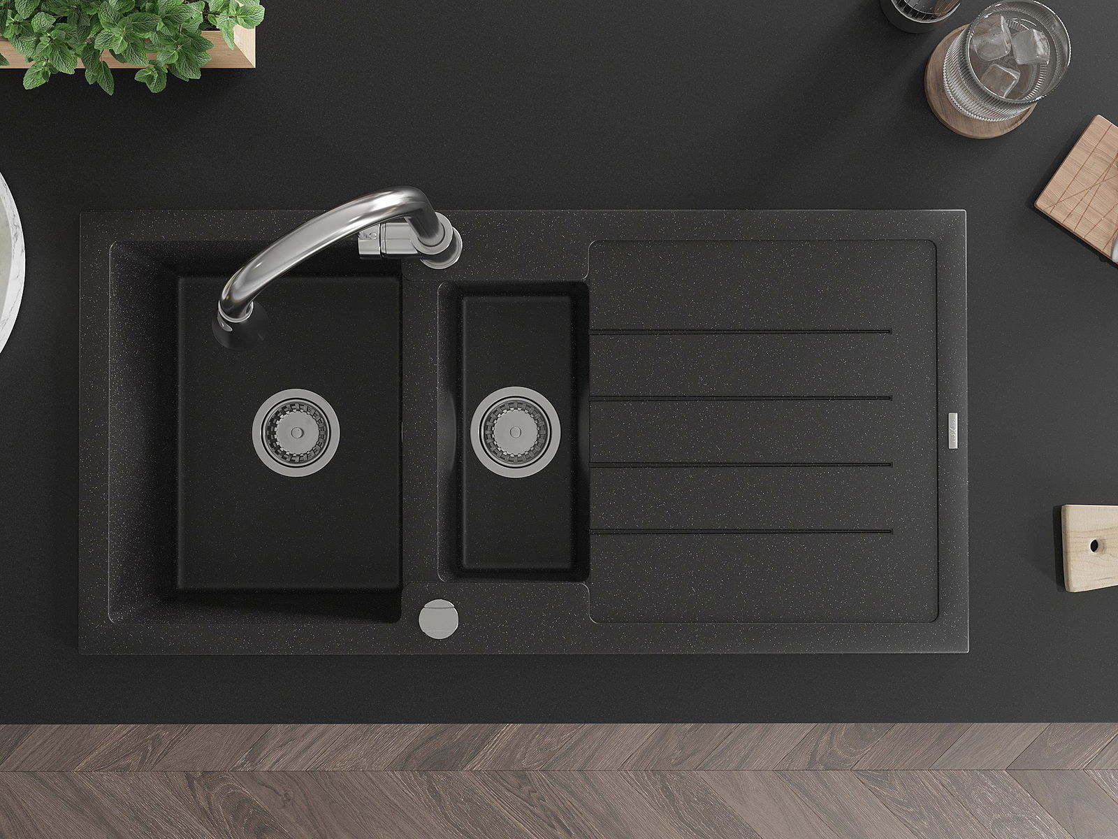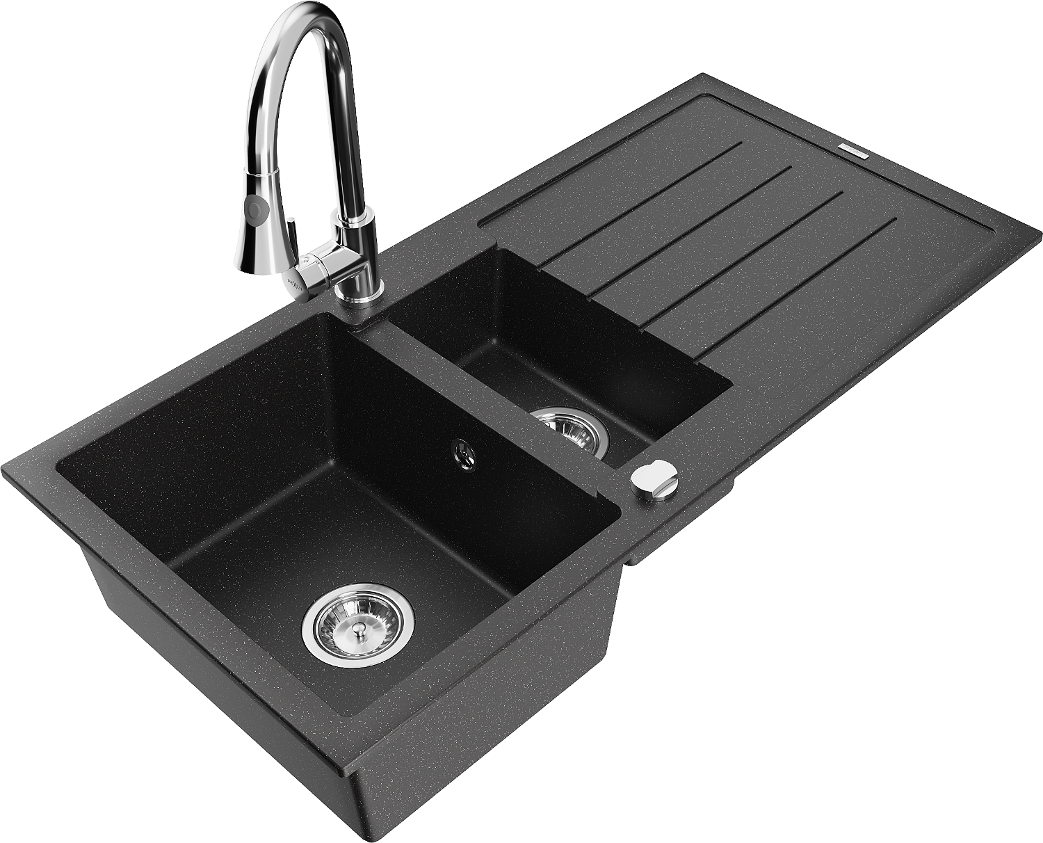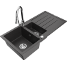 Mexen Andres Гранитна мивка с 1,5 отделения, с дренаж и кухненски смесител Elia,