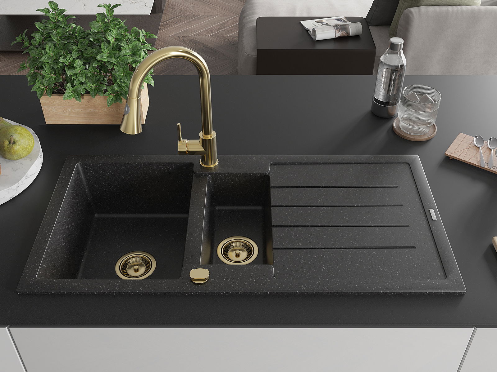 Мивката е направена от висококачествен гранит. Това е елегантно и най -вече практично допълнение към всяка кухня, независимо от нейния стил. Висококачествената и гранитна издръжливост осигуряват много години употреба.