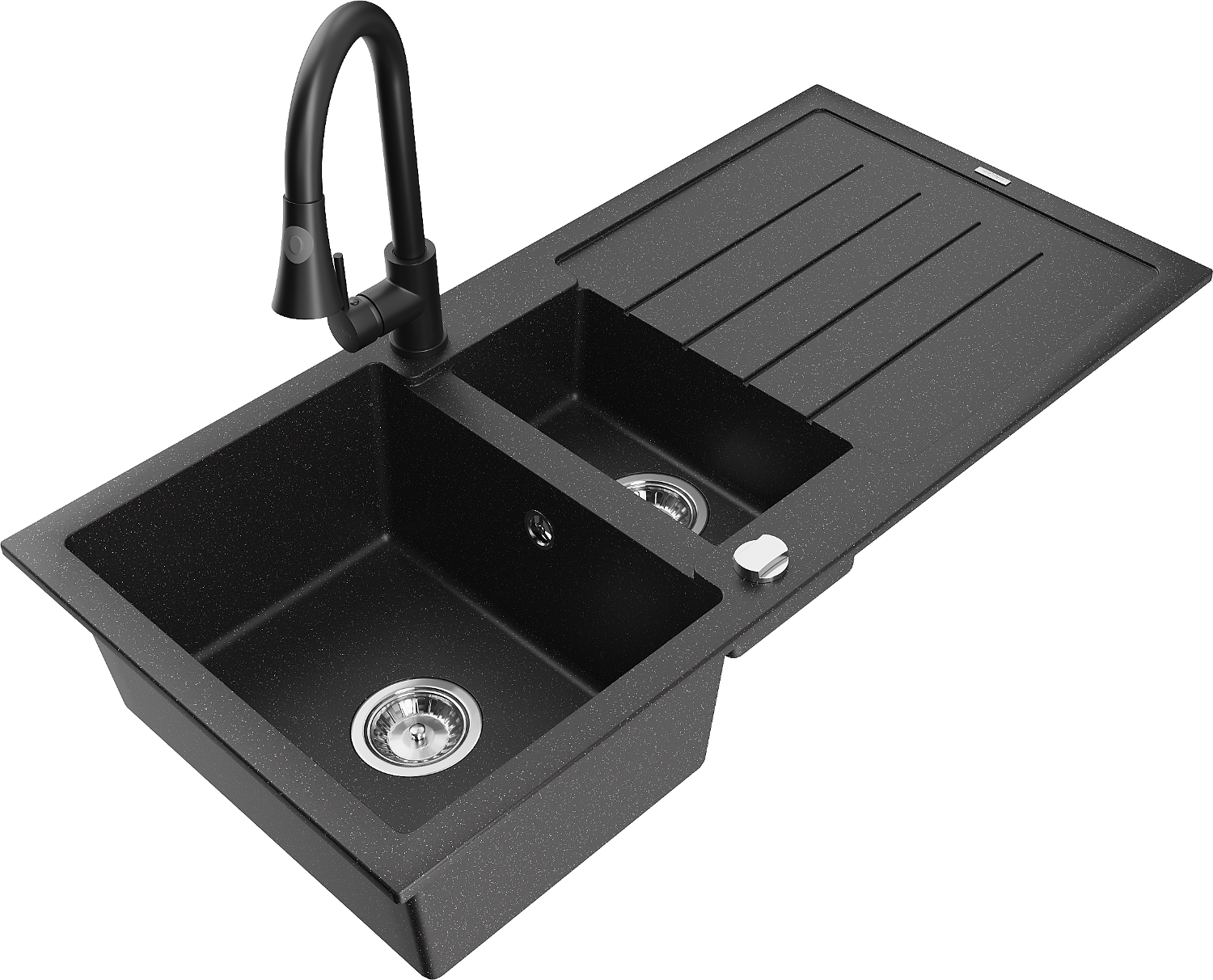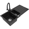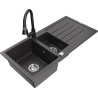 Mexen Andres гранитна мивка с 1,5 отделения с капак и кухненски смесител Elia,