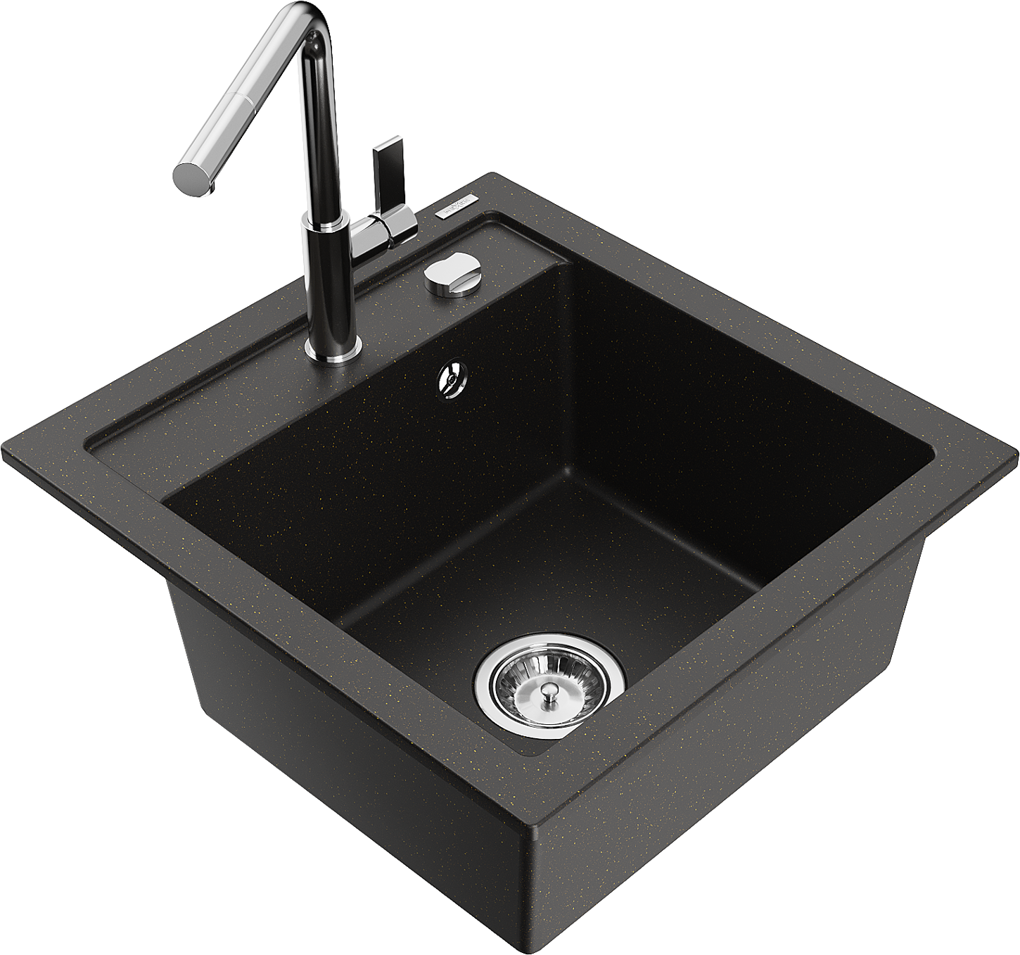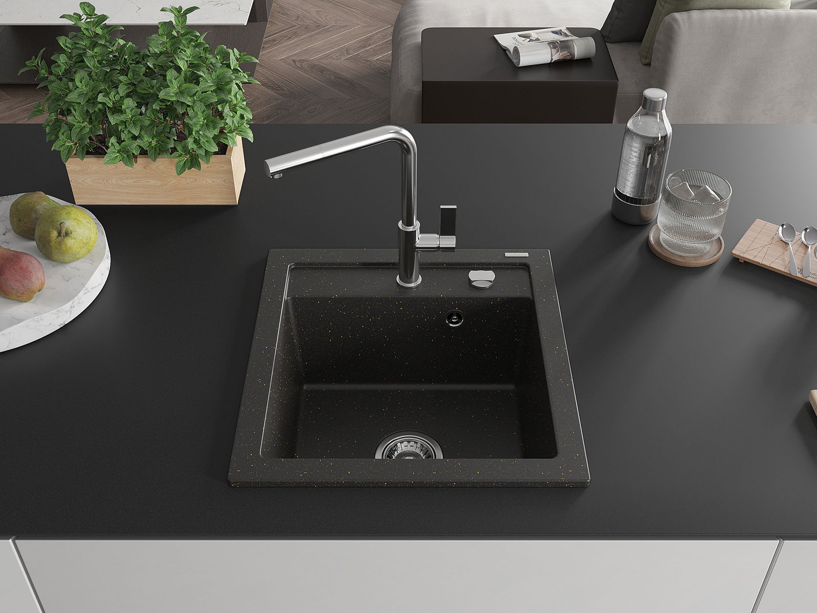 Mexen Vito еднокоморов гранитен мивка с кухненски смесител Flora, черен/златен металик - 6503-75-670401-00