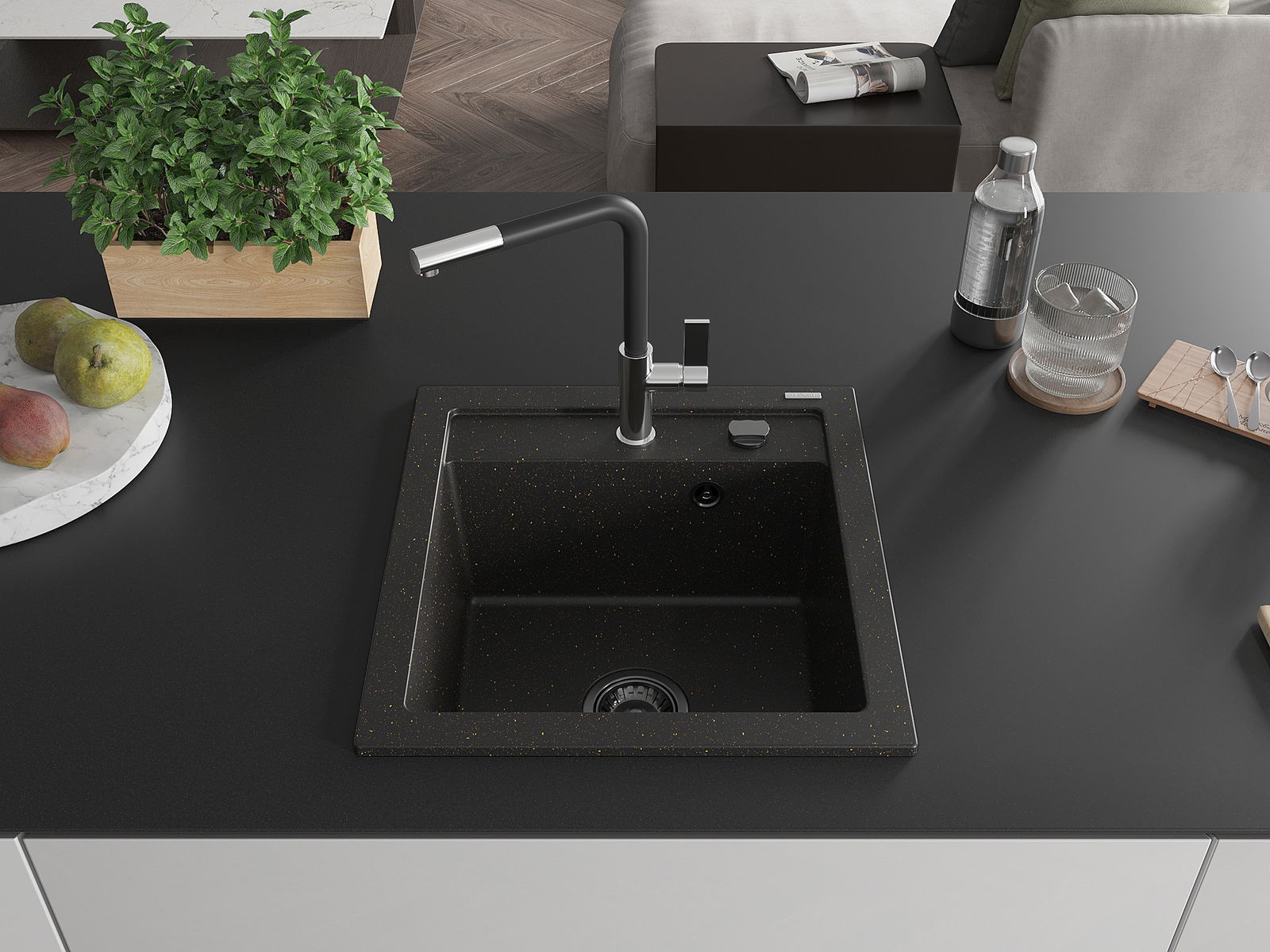 Мивката е направена от висококачествен гранит. Това е елегантно и най -вече практично допълнение към всяка кухня, независимо от нейния стил. Висококачествената и гранитна издръжливост осигуряват много години употреба.