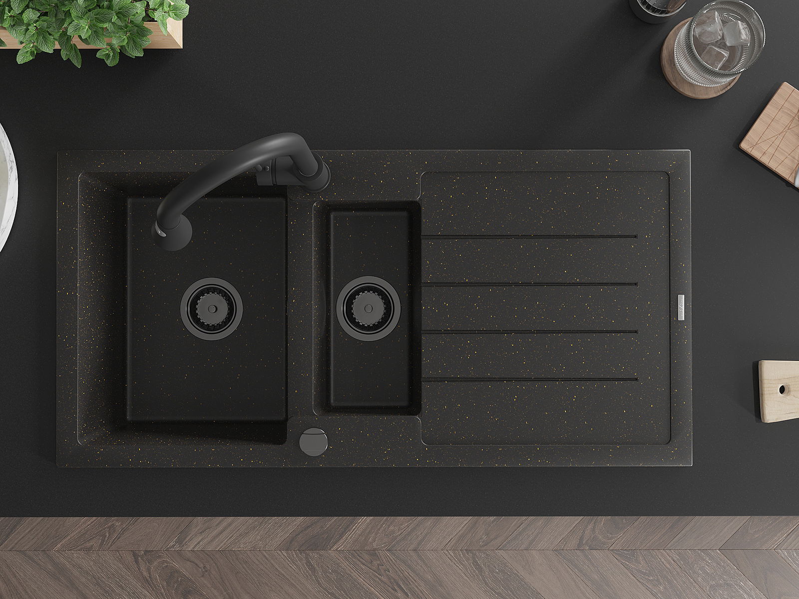 Мивката е направена от висококачествен гранит. Това е елегантно и най -вече практично допълнение към всяка кухня, независимо от нейния стил. Висококачествената и гранитна издръжливост осигуряват много години употреба.