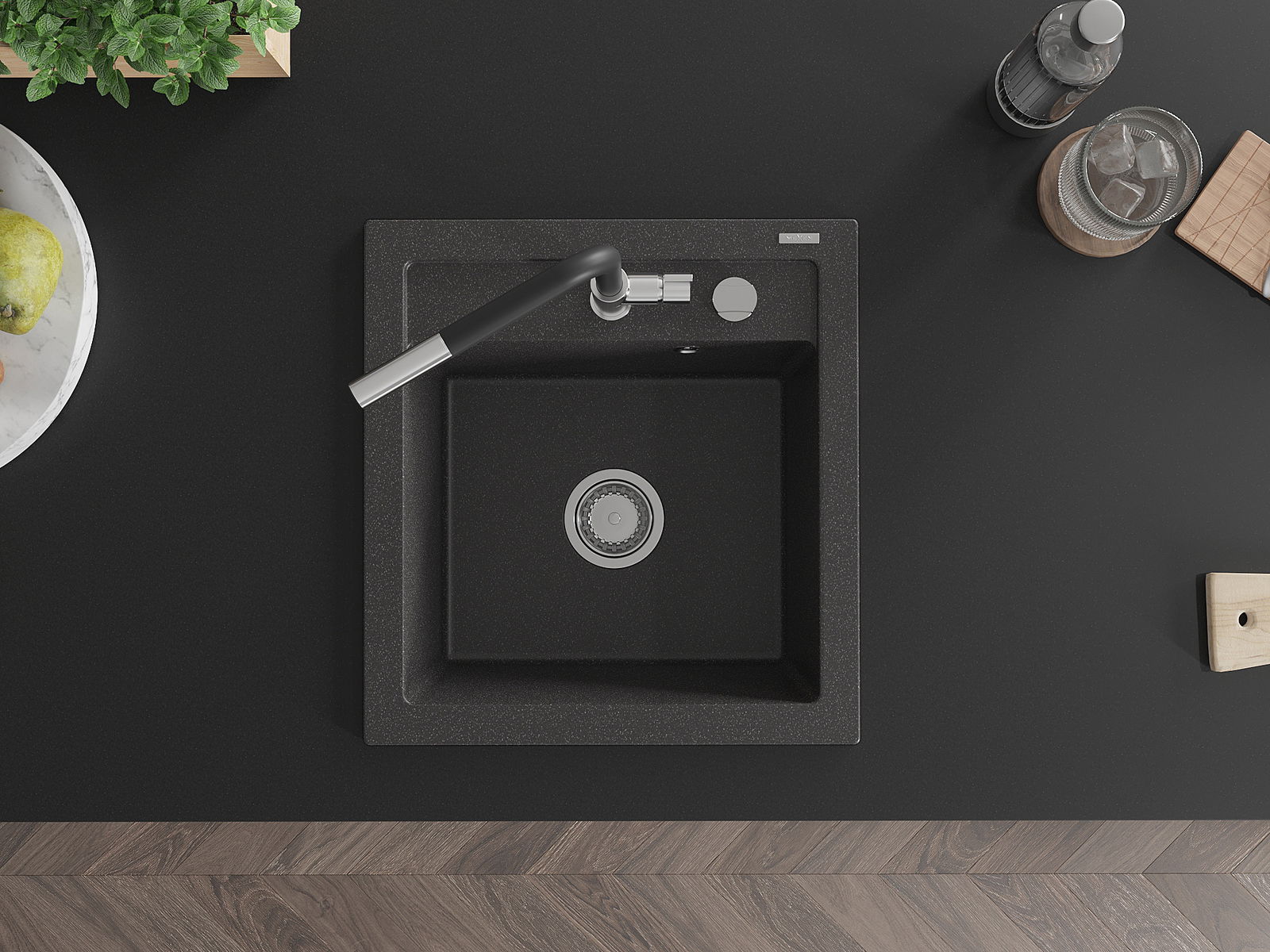 Мивката разполага с предварително издълбан отвор с диаметър 35 мм за самостоятелно изключване. Може да се използва, наред с други неща, за монтаж на дозатор за течност, който ще елиминира наличието на пластмасови бутилки в кухнята и ще й придаде елегантно завършване.