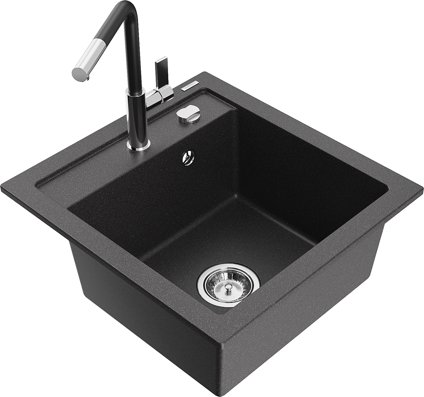 Mexen Vito гранитна мивка с 1 отделение и кухненски смесител Flora, черна на пръски - 6503-76-670401-07