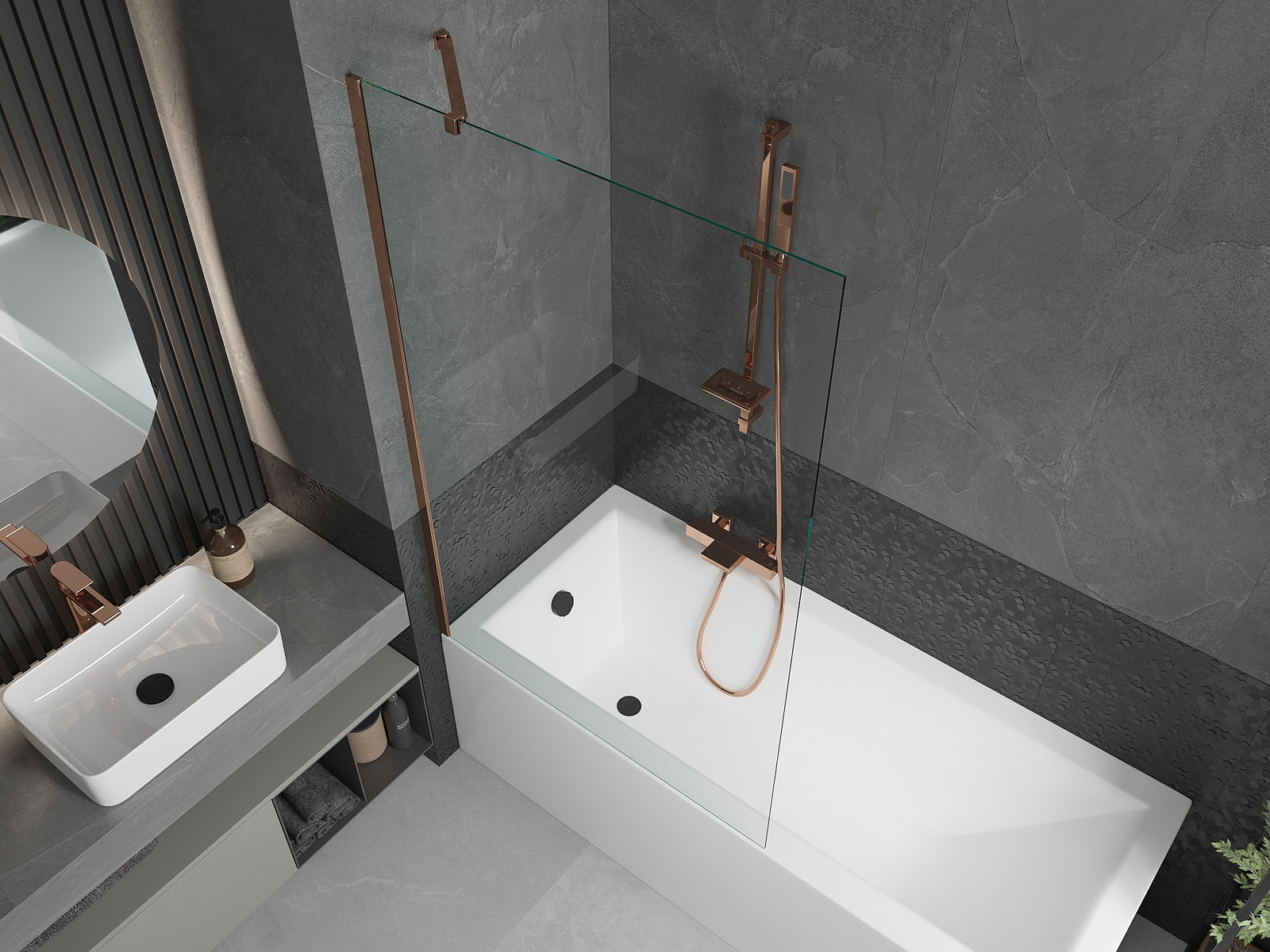 Mexen Next параван за вана 1-крилен 90 x 150 cm, прозрачен, розово злато - 895-090-000-00-00-60