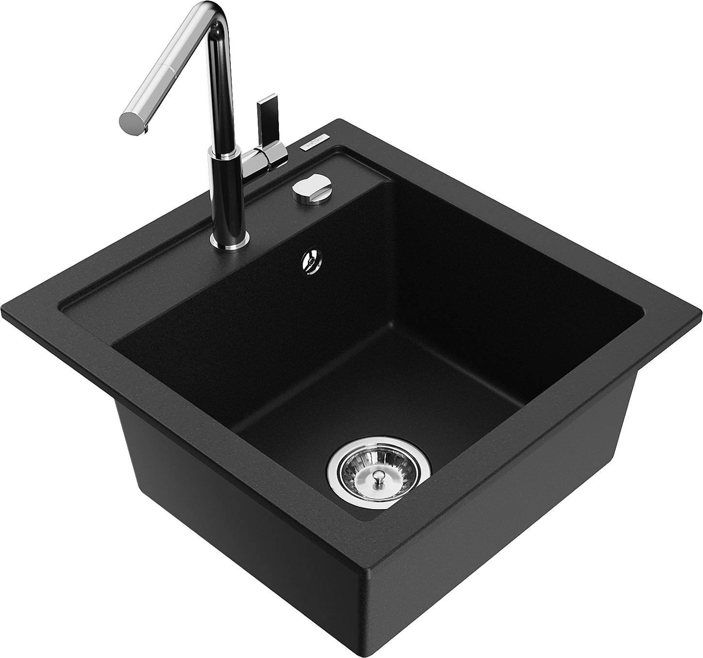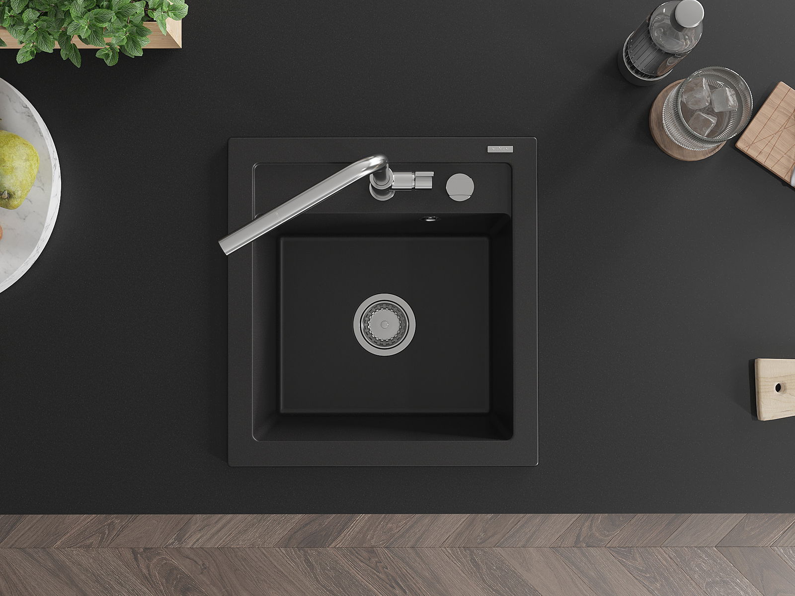 Mexen Vito гранитна кухненска мивка с 1 корито с кухненски смесител Flora, черен - 6503-77-670401-00