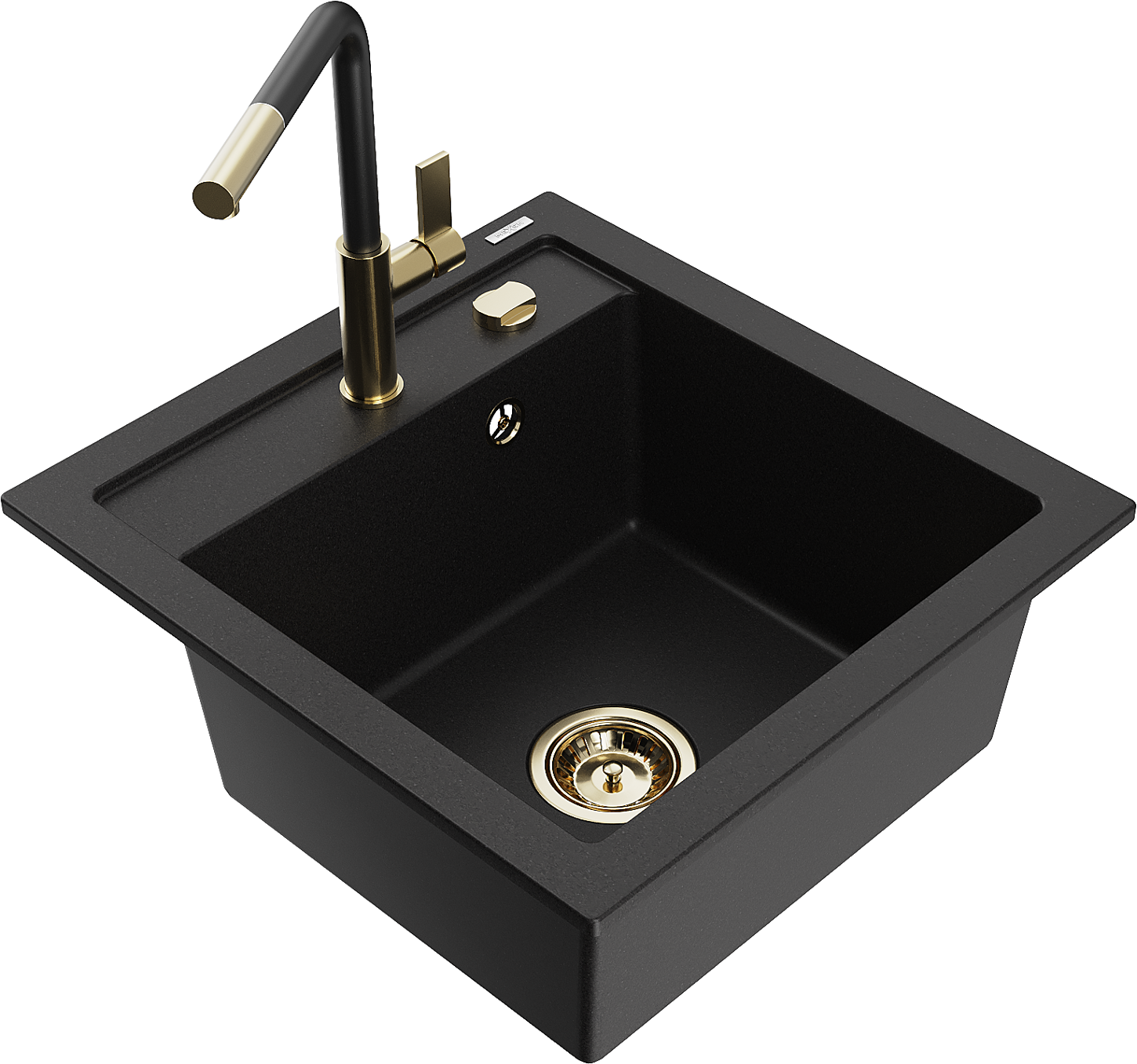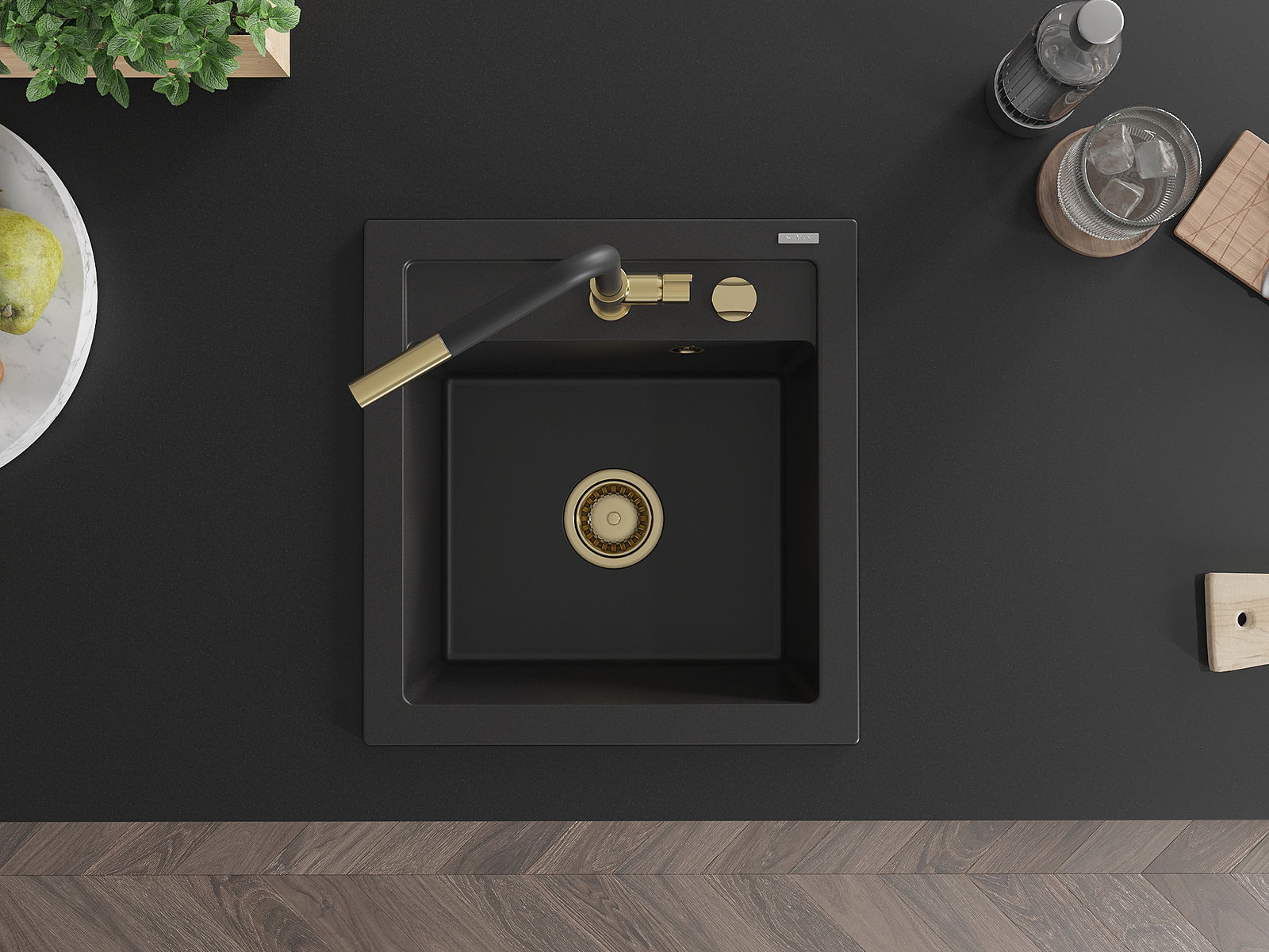 Mexen Vito гранитна мивка с 1 отделение и кухненски смесител Flora, черен - 6503-77-670401-57-G
