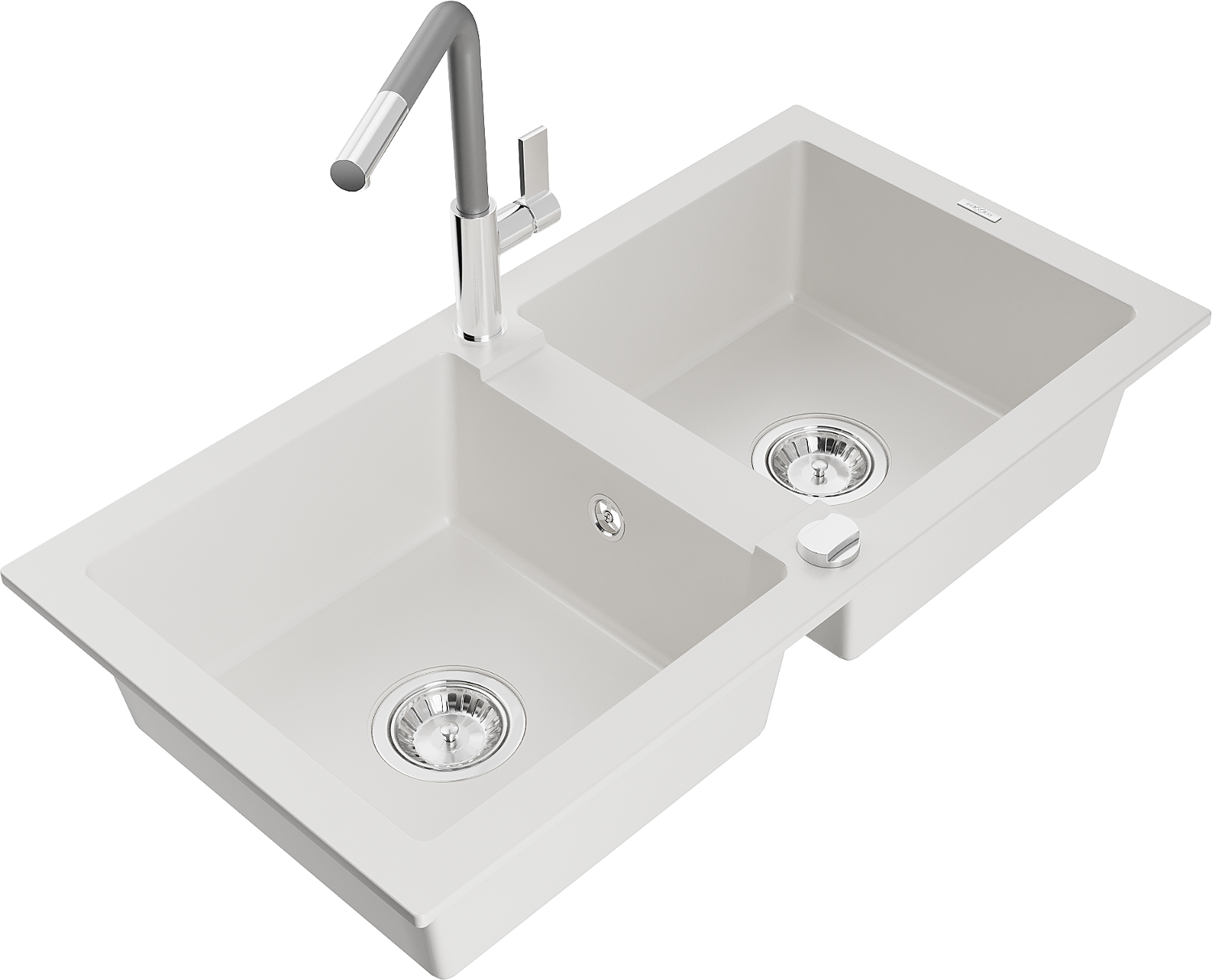 Mexen Mario гранитна мивка с 2 отделения и кухненски смесител Flora, бял