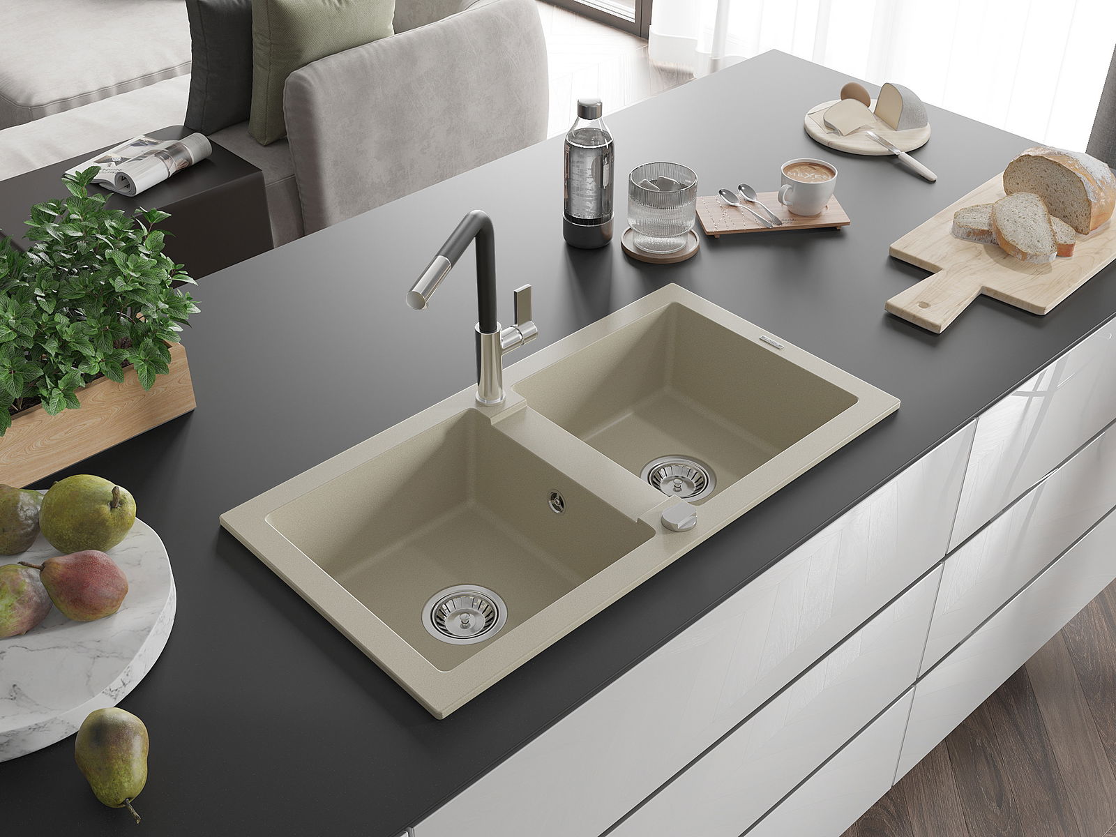 Повърхността на мивката е устойчива на петна и обезцветяване, благодарение на които е лесно да се почиства и запазва цвета си за дълго време. Естетически и практически допълващи всяка кухня.