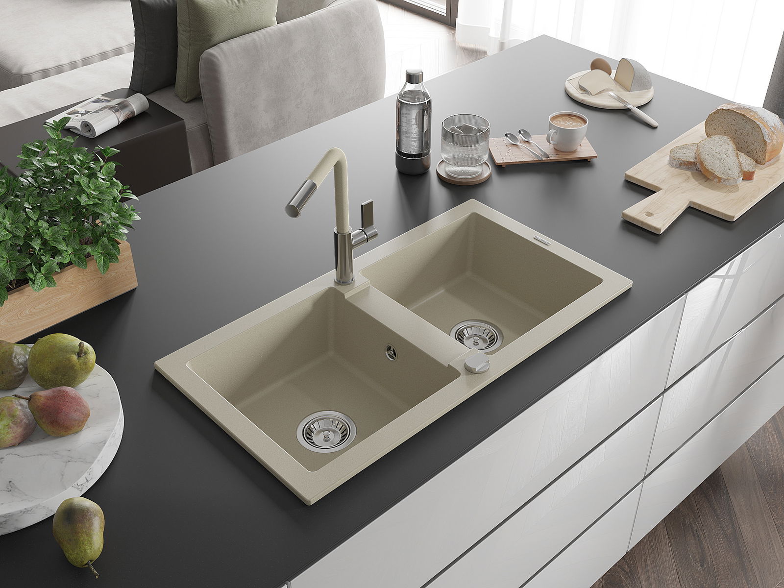 Повърхността на мивката е устойчива на петна и обезцветяване, благодарение на които е лесно да се почиства и запазва цвета си за дълго време. Естетически и практически допълващи всяка кухня.