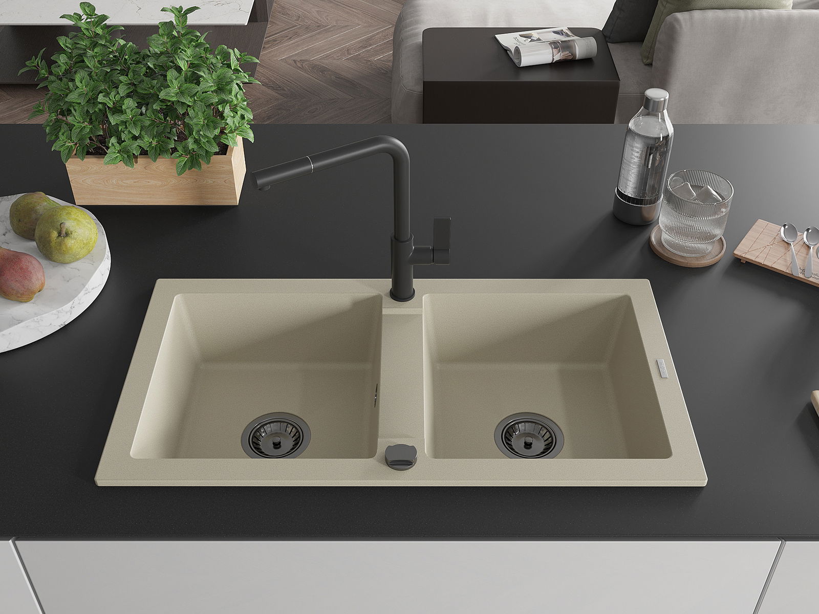 Мивката е направена от висококачествен гранит. Това е елегантно и най -вече практично допълнение към всяка кухня, независимо от нейния стил. Висококачествената и гранитна издръжливост осигуряват много години употреба.