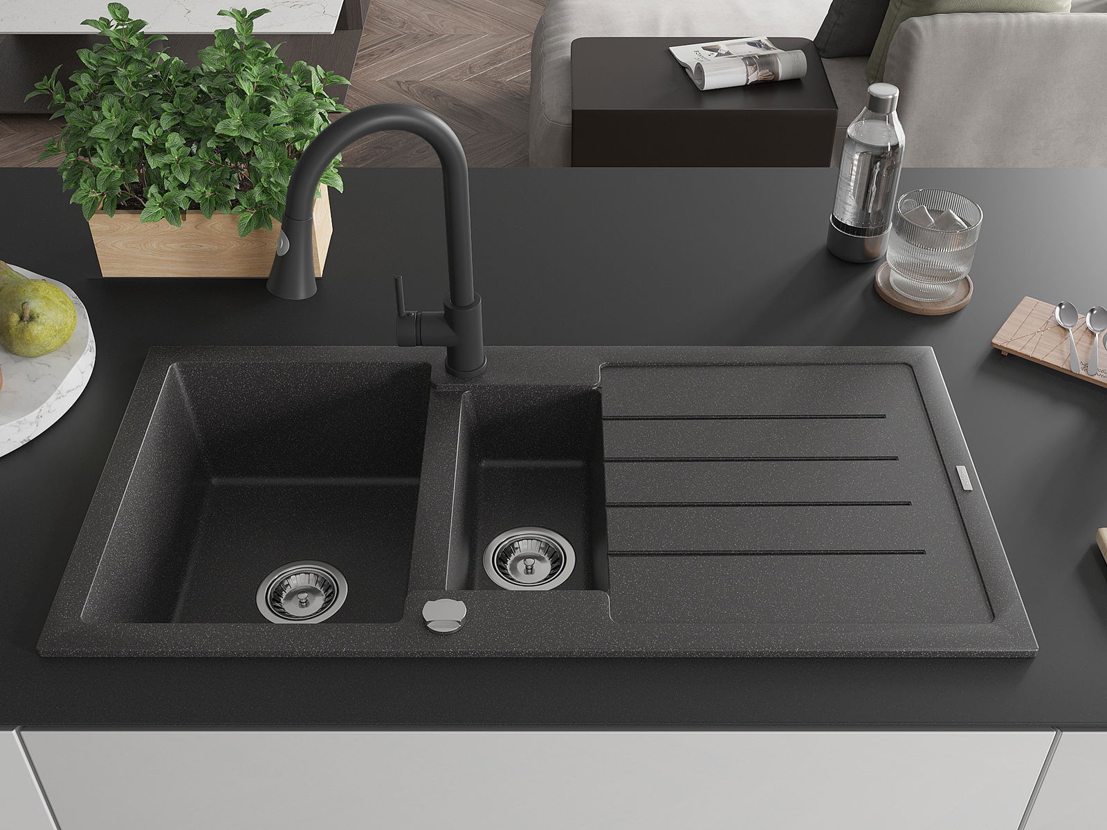 Мивката е направена от висококачествен гранит. Това е елегантно и най -вече практично допълнение към всяка кухня, независимо от нейния стил. Висококачествената и гранитна издръжливост осигуряват много години употреба.