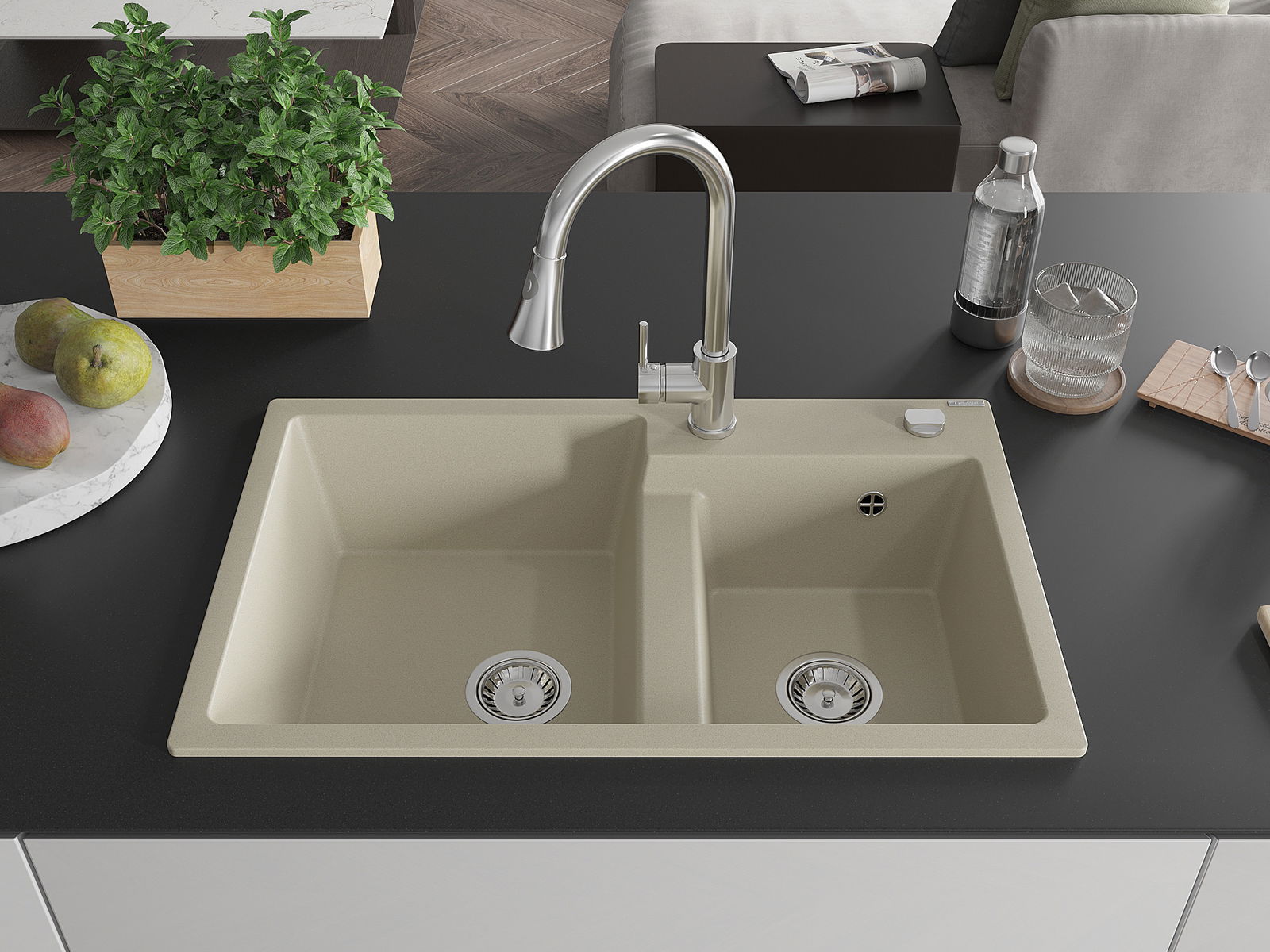 Повърхността на мивката е устойчива на петна и обезцветяване, благодарение на които е лесно да се почиства и запазва цвета си за дълго време. Естетически и практически допълващи всяка кухня.