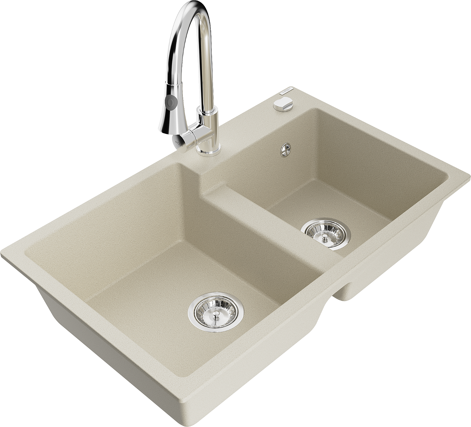 Mexen Tomas гранитна мивка с две отделения и кухненски смесител Elia, бежов - 6516-69-670101-00