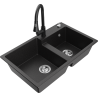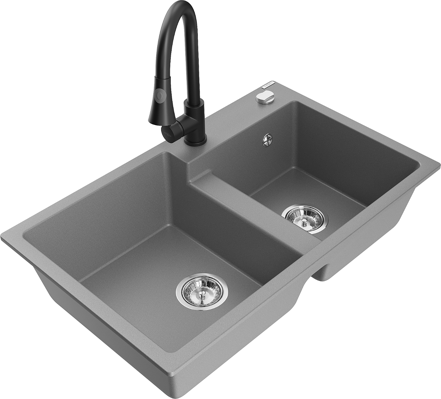 Mexen Tomas гранитна мивка с 2 отделения и кухненски смесител Elia, сив - 6516-71-670101-70
