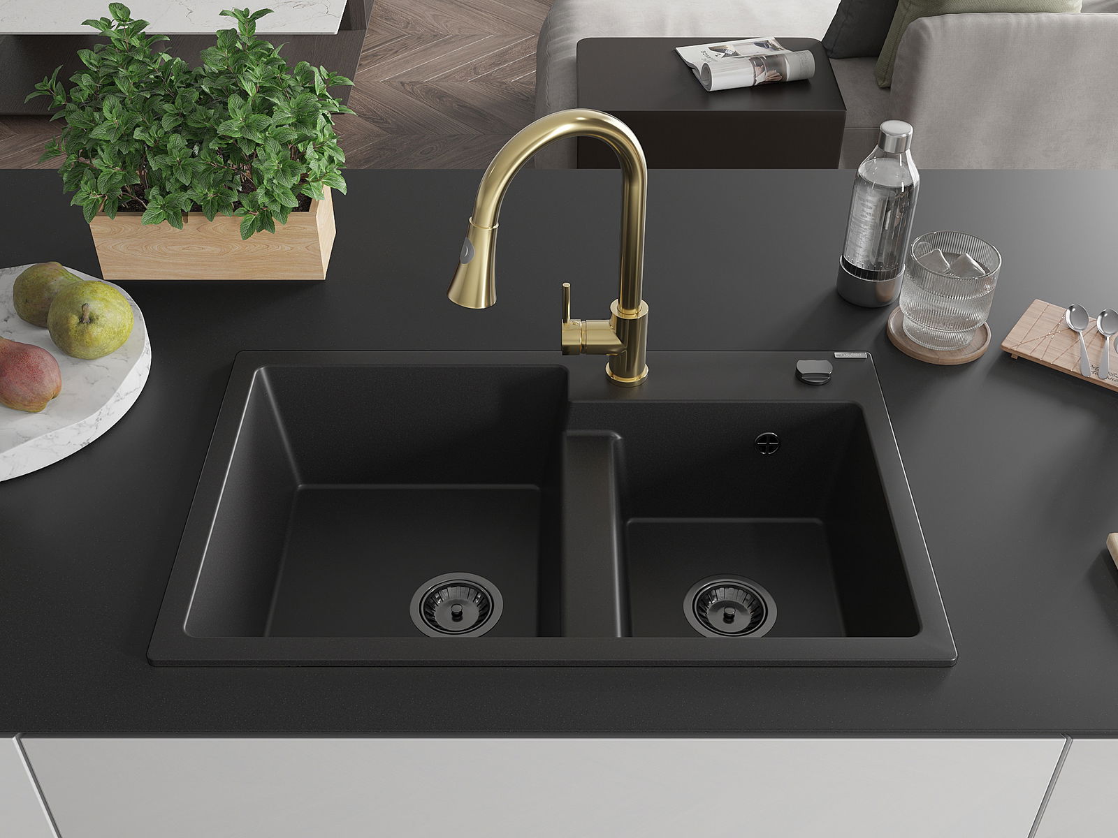 Мивката е направена от висококачествен гранит. Това е елегантно и най -вече практично допълнение към всяка кухня, независимо от нейния стил. Висококачествената и гранитна издръжливост осигуряват много години употреба.