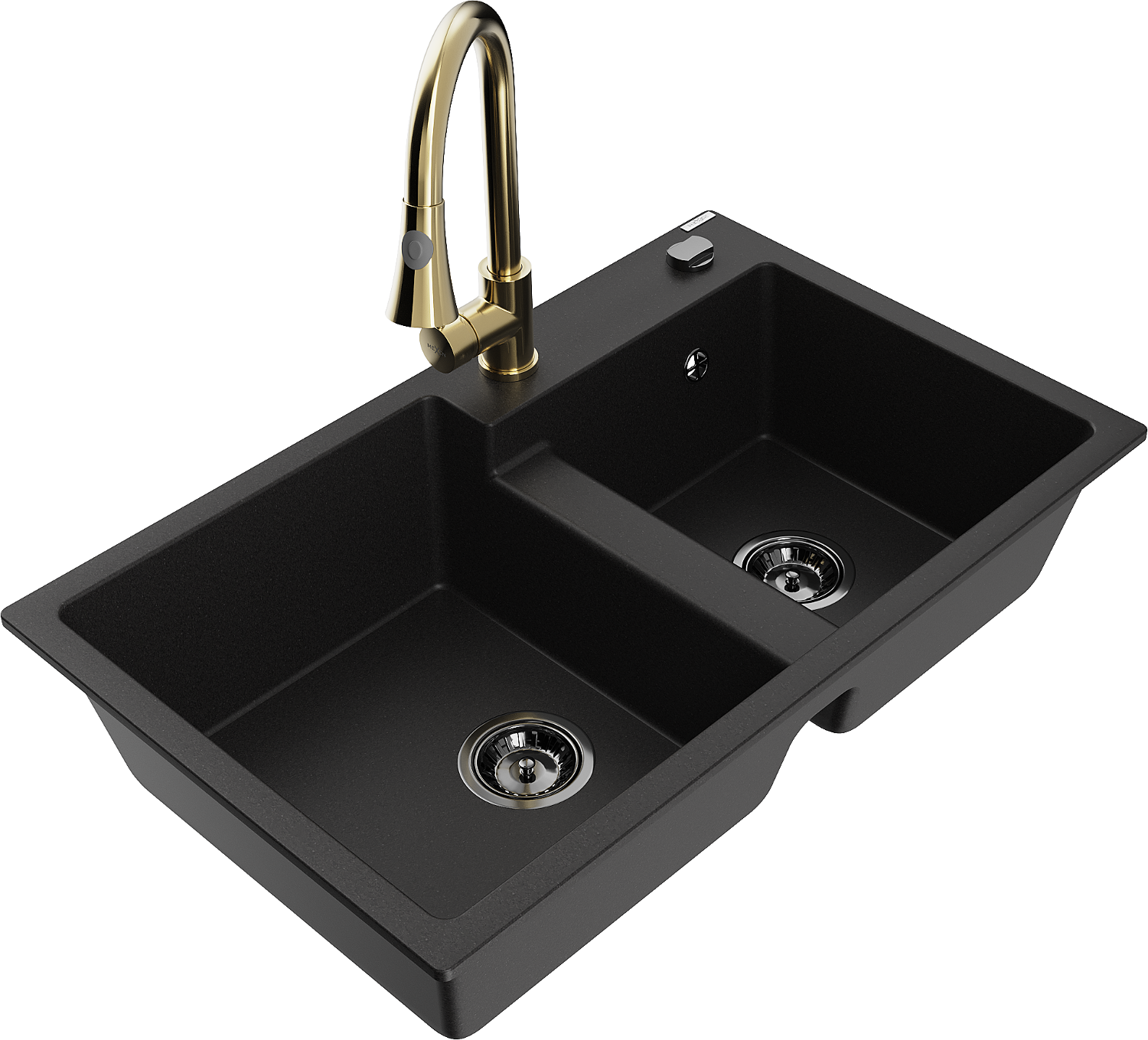 Mexen Tomas гранитна кухненска мивка с две корита и кухненски смесител Elia, черен - 6516-77-670101-50-B