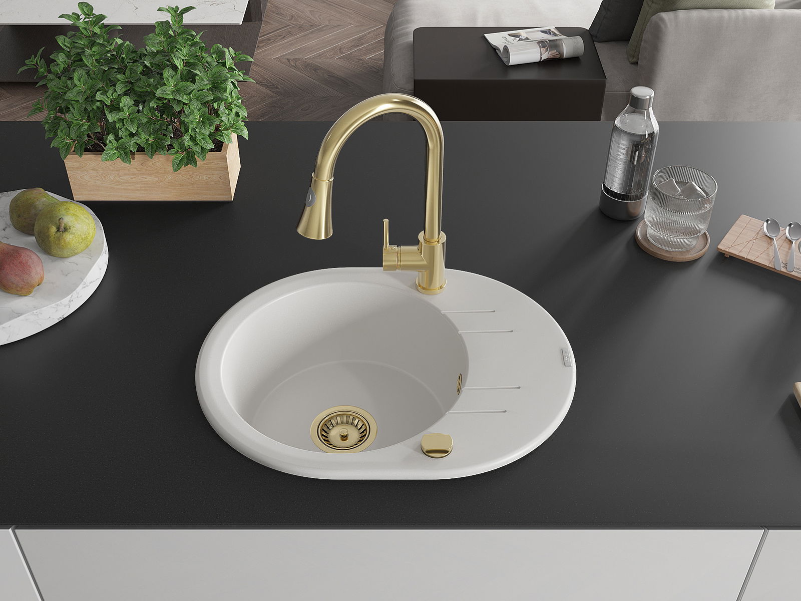 Повърхността на мивката е устойчива на петна и обезцветяване, благодарение на които е лесно да се почиства и запазва цвета си за дълго време. Естетически и практически допълващи всяка кухня.