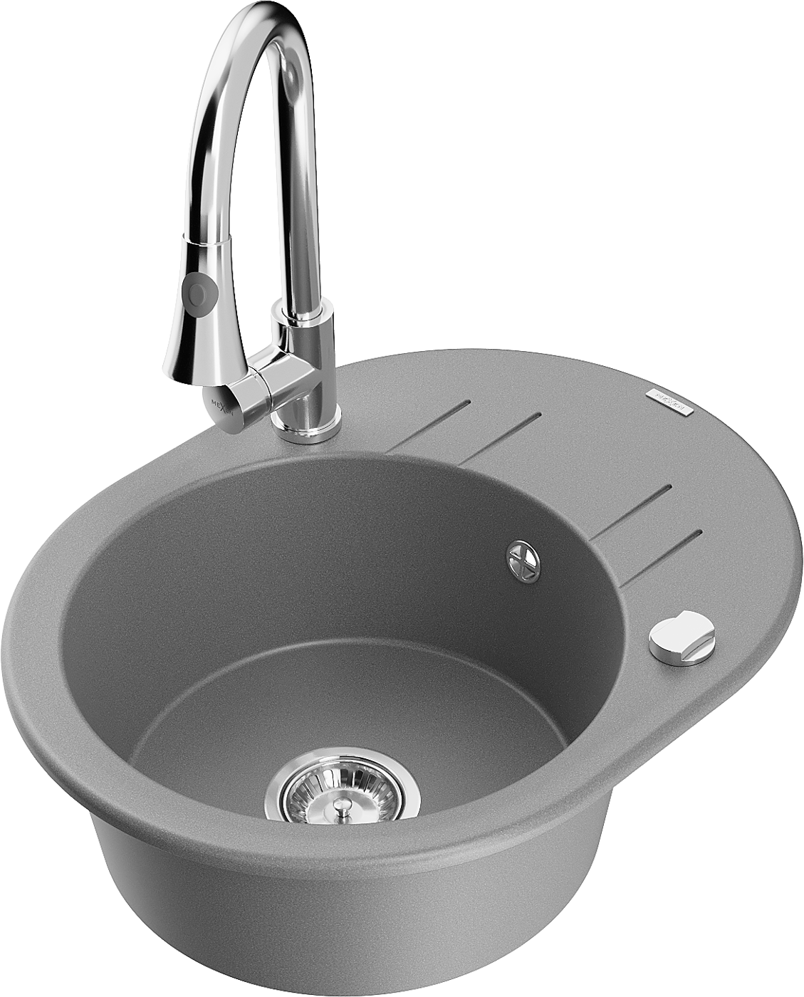 Mexen Kevin гранитна мивка с 1 отделение с отцедник и кухненски смесител Elia, сив - 6517-71-670101-00