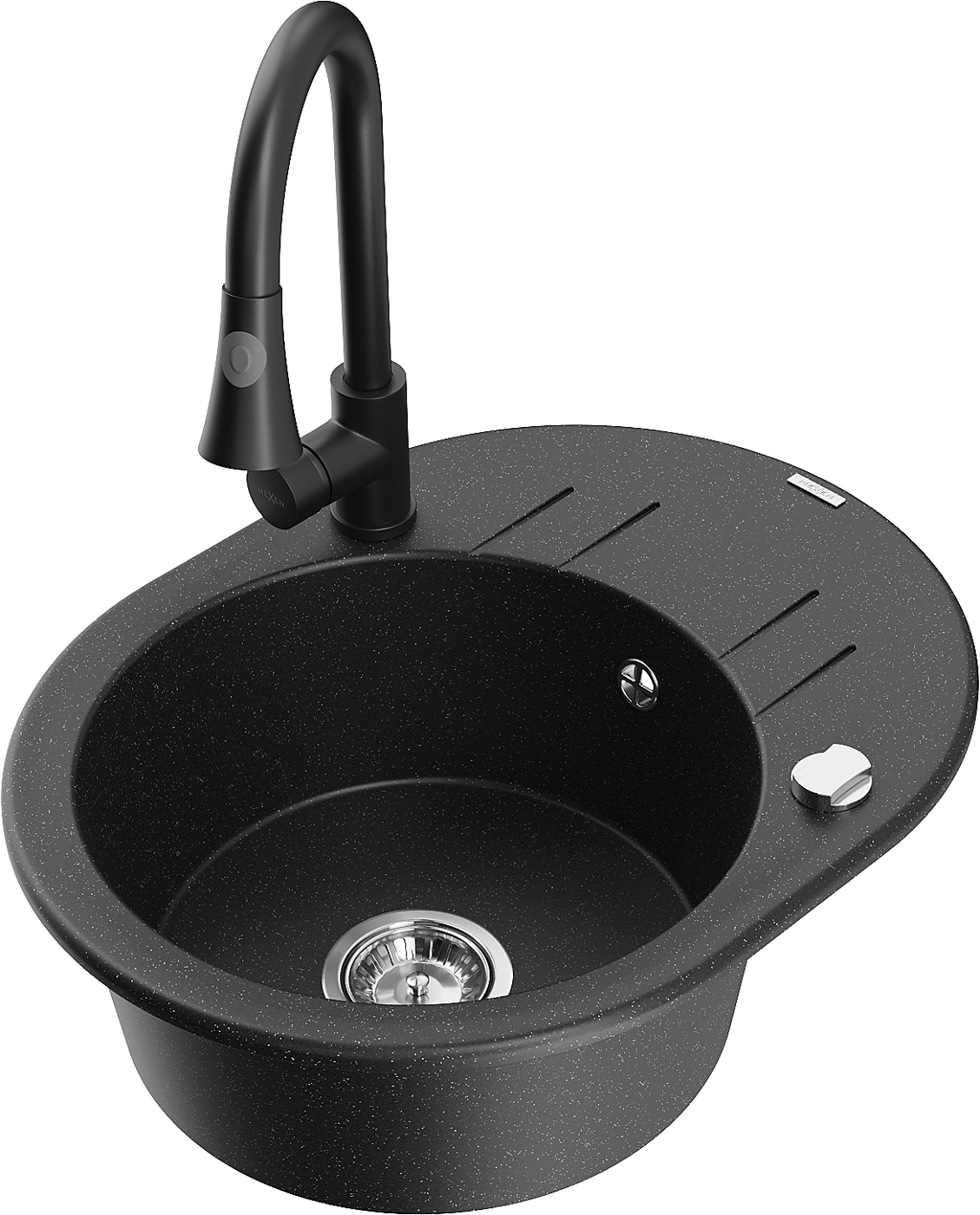 Мексен Кевин гранитна мивка с 1 камера с отцедник и кухненски смесител Елия, черен/сребърен металик - 6517-73-670101-70