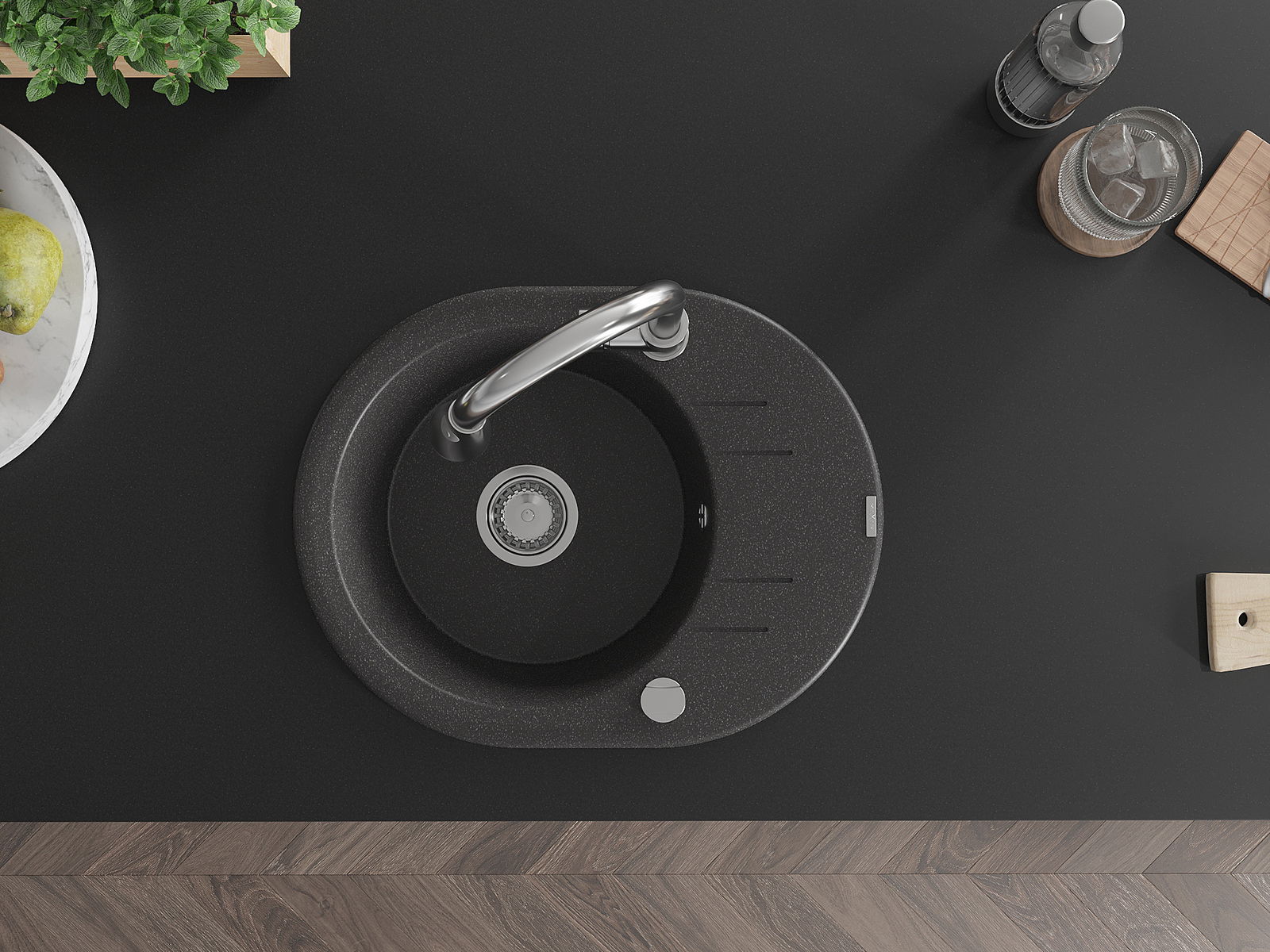 Мивката е направена от висококачествен гранит. Това е елегантно и най -вече практично допълнение към всяка кухня, независимо от нейния стил. Висококачествената и гранитна издръжливост осигуряват много години употреба.