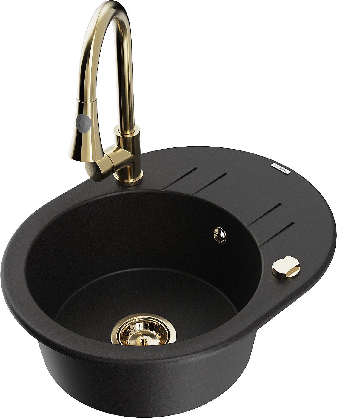 Мекси Кевин гранитна мивка с 1 камера с отцедник и кухненски смесител Elia, черен - 6517-77-670101-50