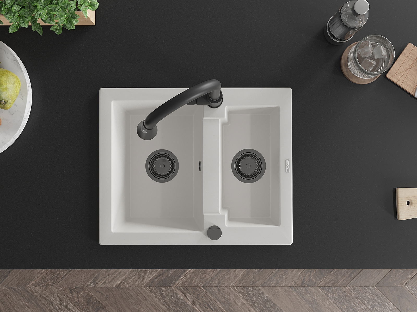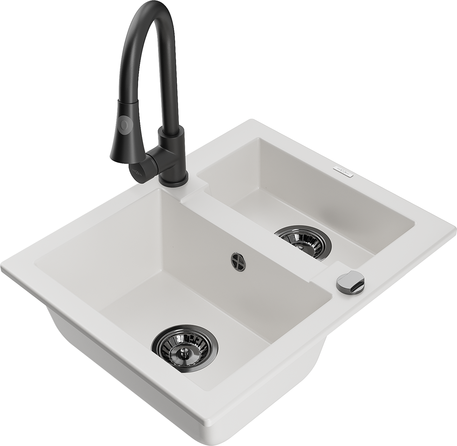 Mexen Carlos гранитна мивка 1,5-коморова с кухненски смесител Elia, бял - 6518-20-670101-70