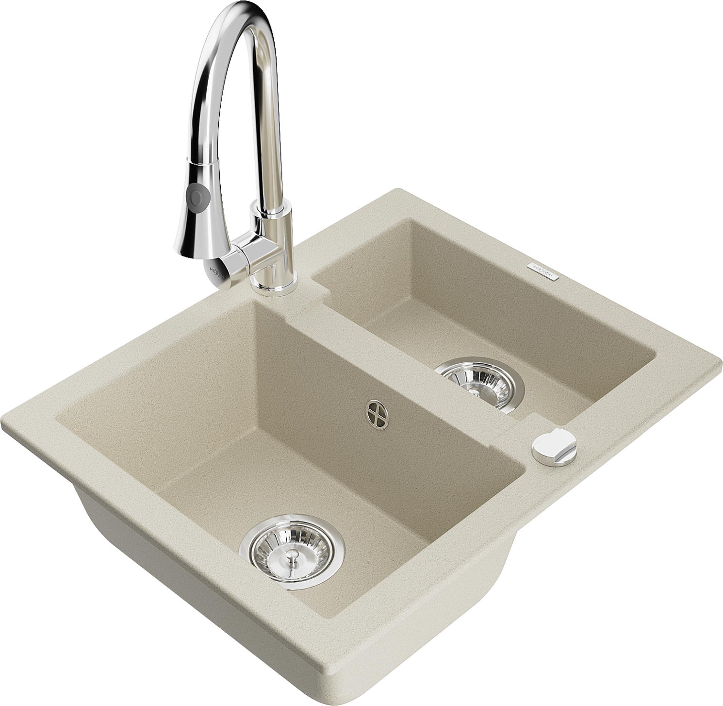 Mexen Carlos гранитна мивка 1,5-коморна с кухненски смесител Elia, бежов - 6518-69-670101-00