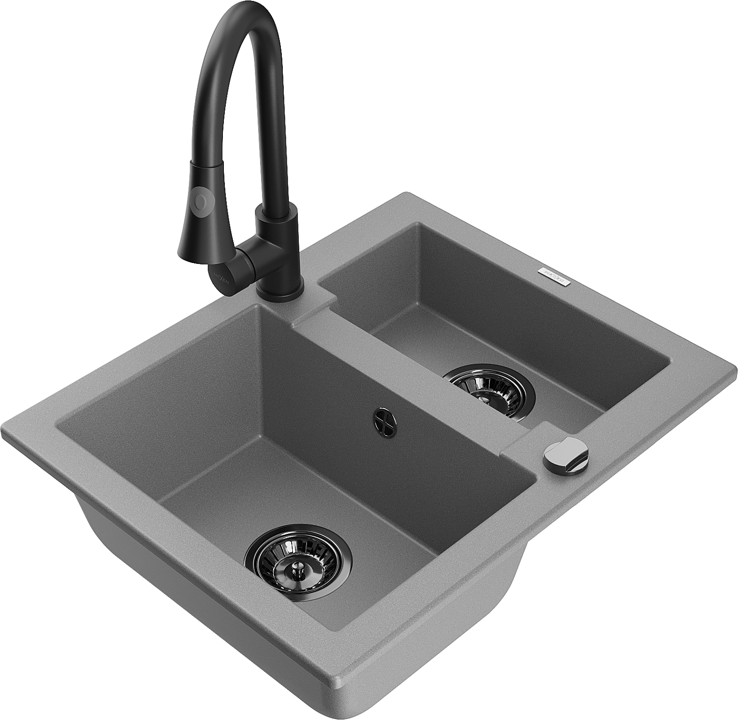 Mexen Carlos гранитна мивка с 1,5 камери с кухненски смесител Elia, сив - 6518-71-670101-70-B