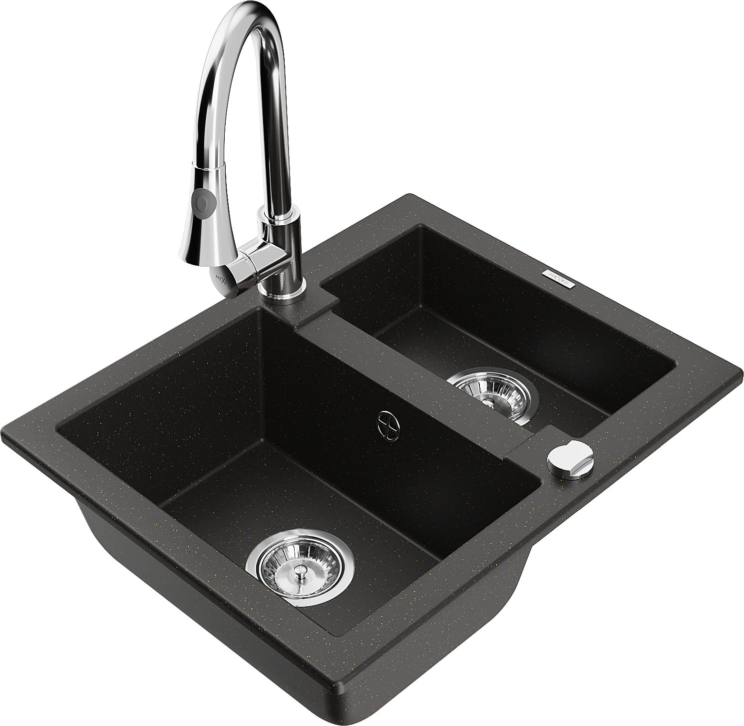 Mexen Carlos гранитна мивка с 1,5 камери с кухненски смесител Elia, черно/златен металик - 6518-75-670101-00