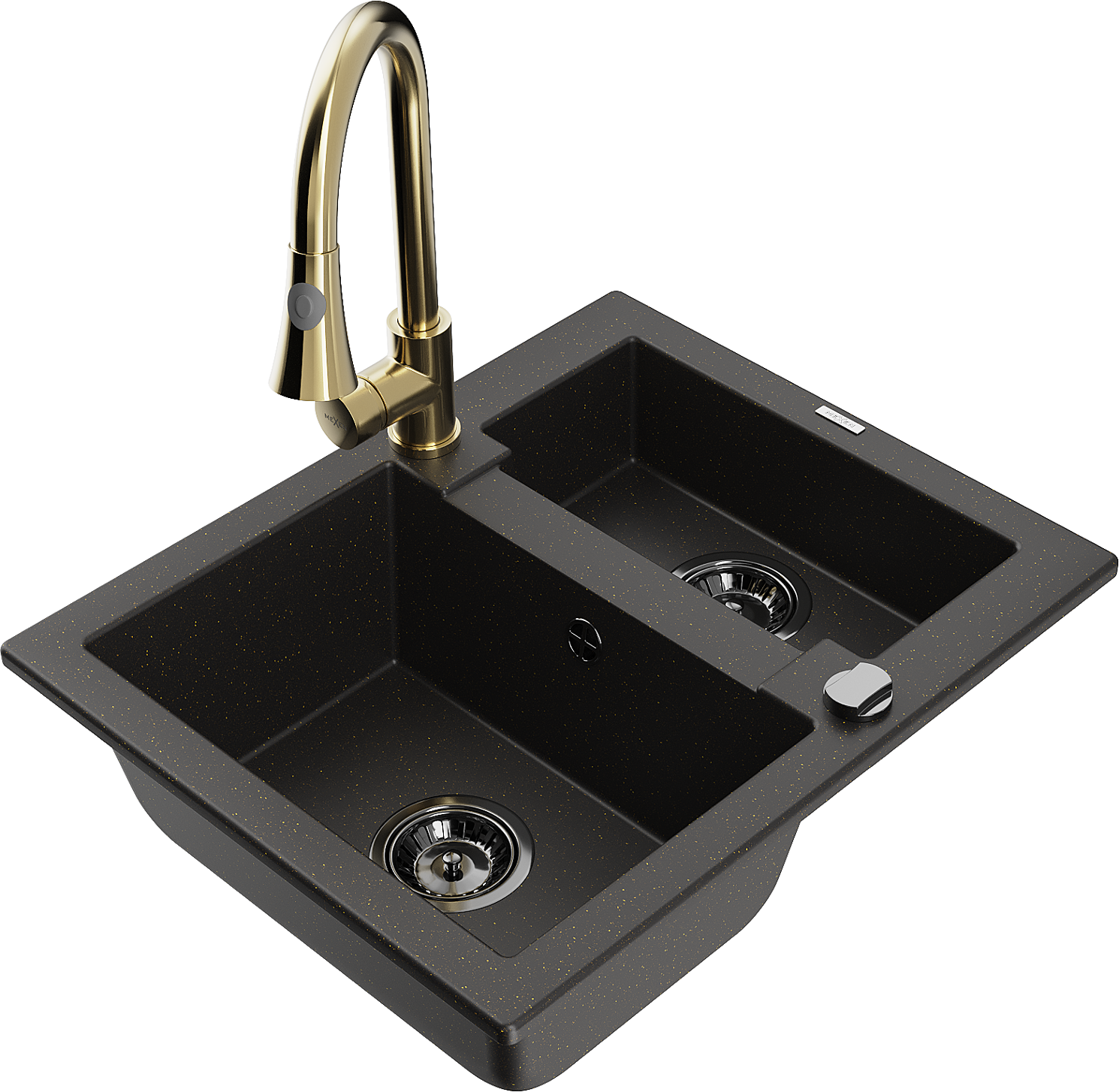 Mexen Carlos гранитна мивка с 1,5 камери с кухненски смесител Elia,