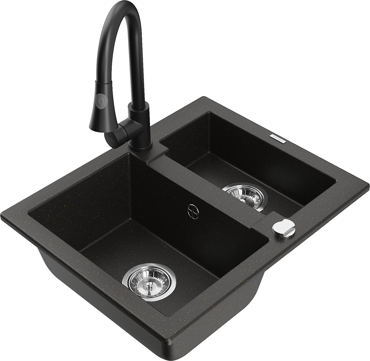 Mexen Carlos гранитна мивка с 1,5 камери и кухненски смесител Elia, черно/златно металик - 6518-75-670101-70
