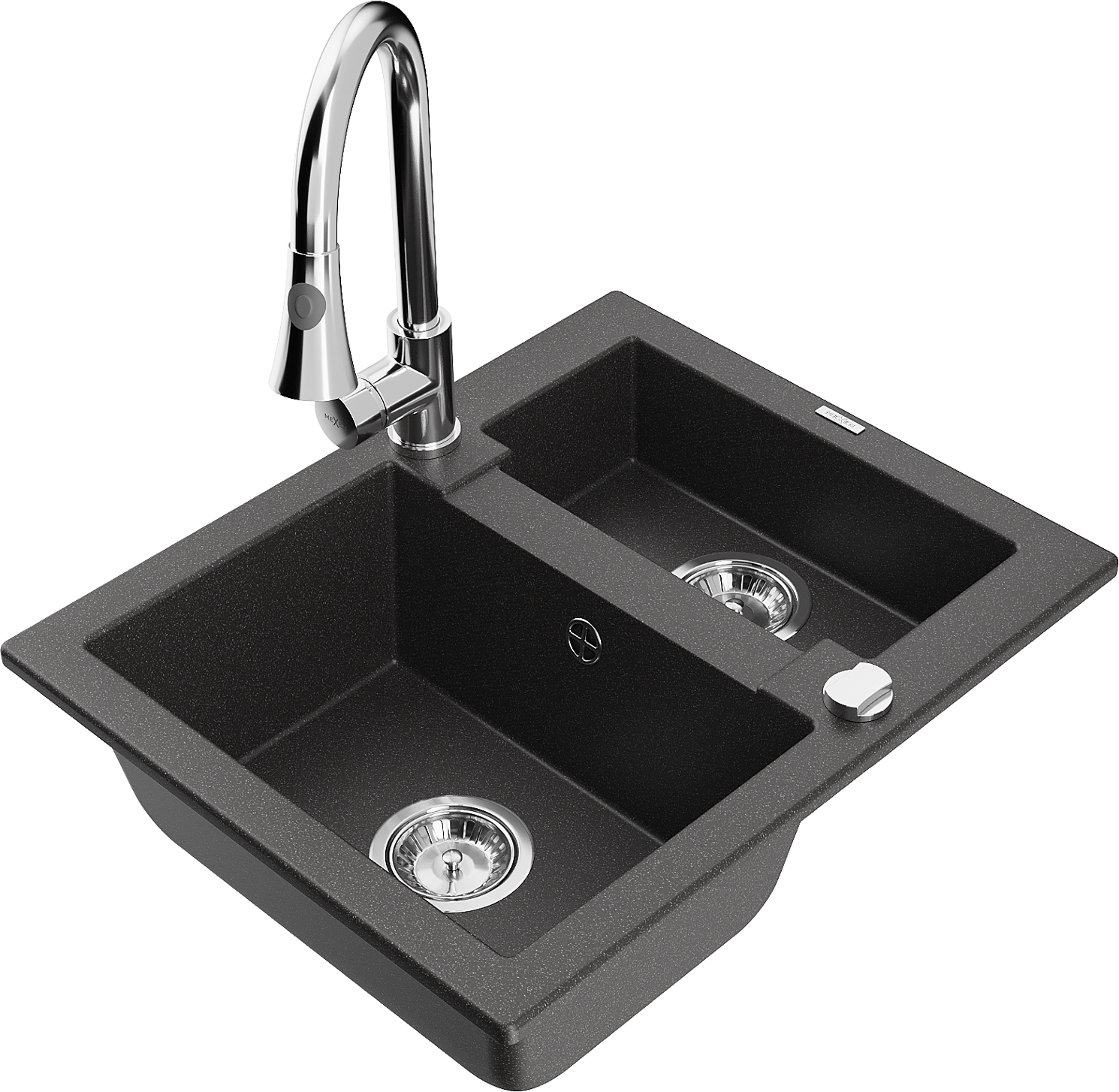 Mexen Carlos гранитна мивка с 1,5 камери и кухненски смесител Elia, черно на петна - 6518-76-670101-00