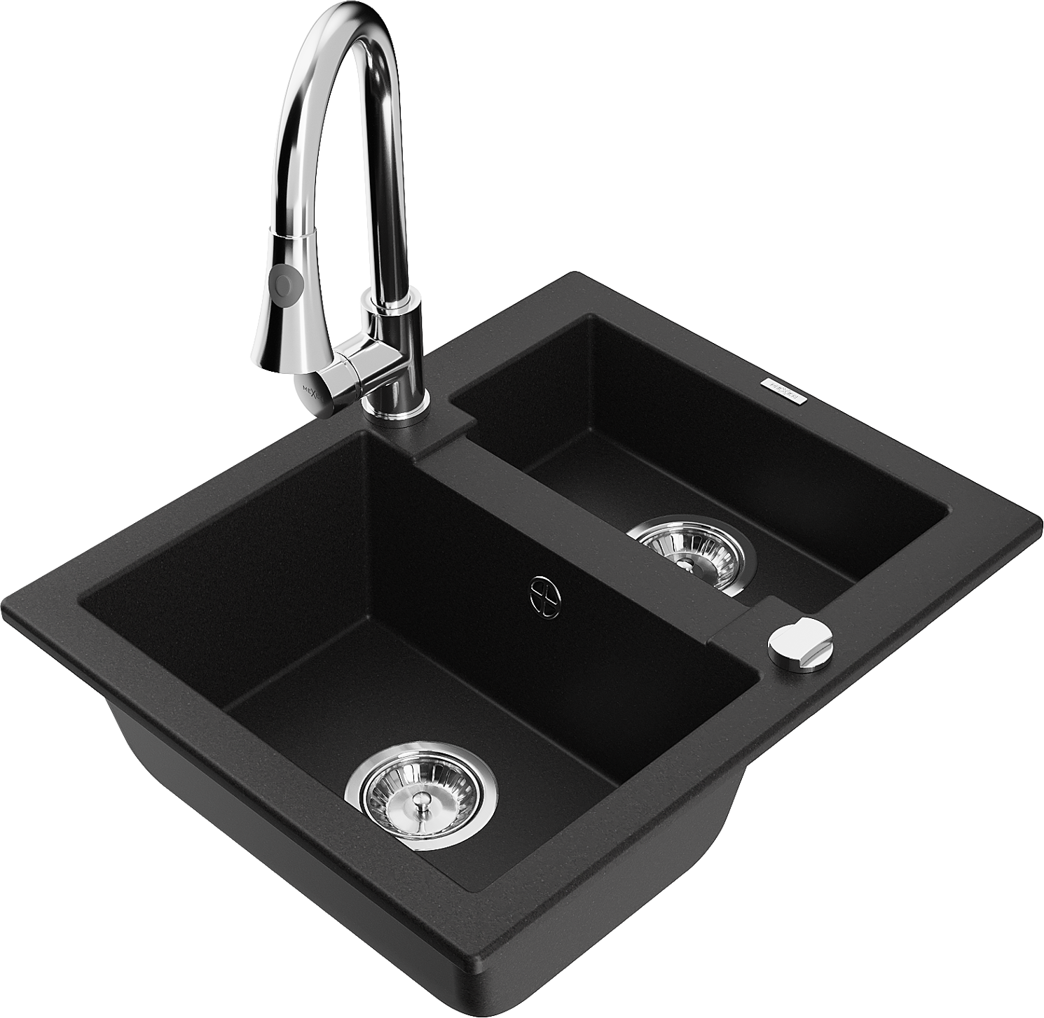 Mexen Carlos гранитна мивка с 1,5 камери с кухненски смесител Elia, черен - 6518-77-670101-00