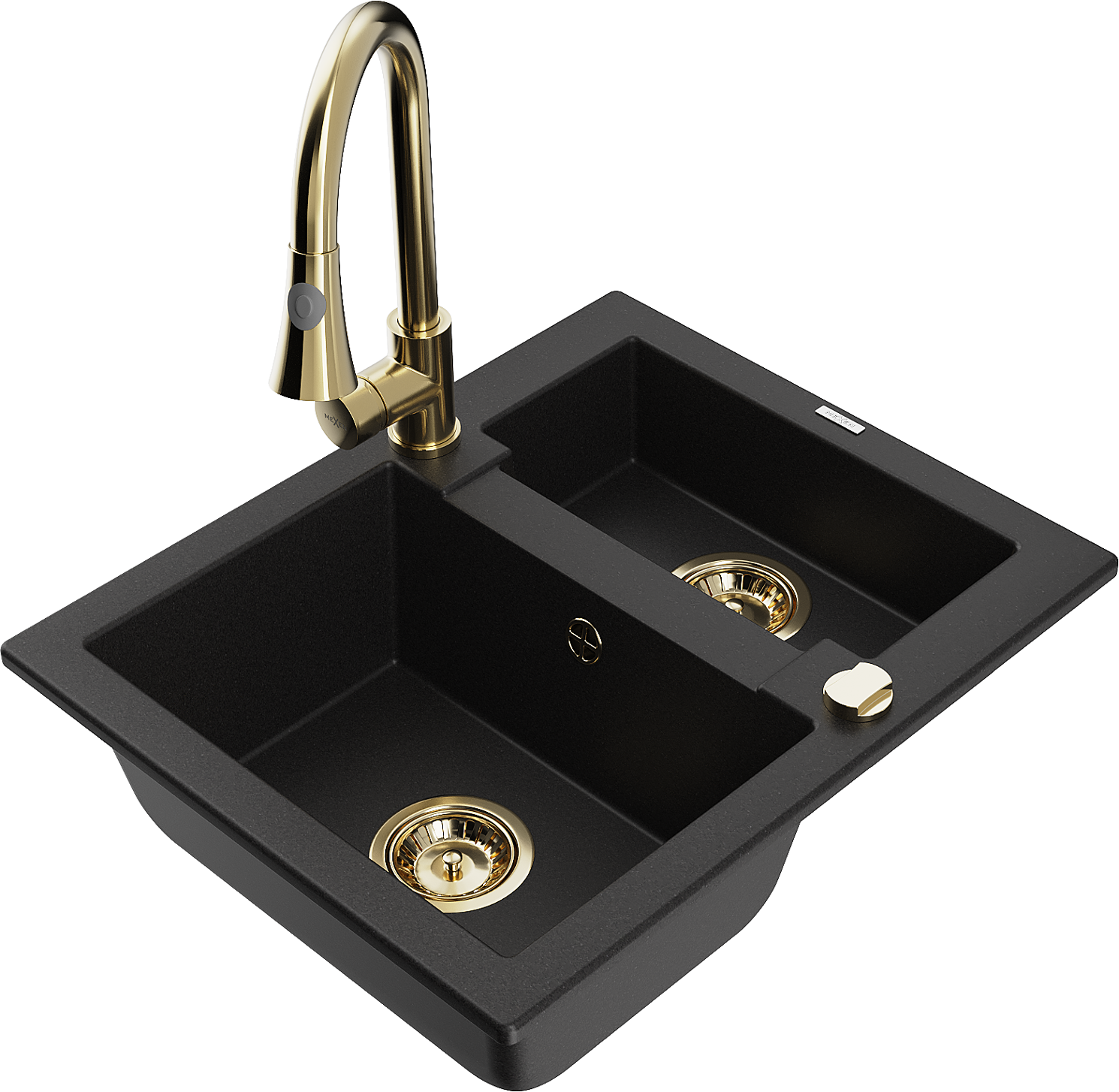 Mexen Carlos гранитна кухненска мивка с 1,5 камери и кухненски смесител Elia, черен - 6518-77-670101-50