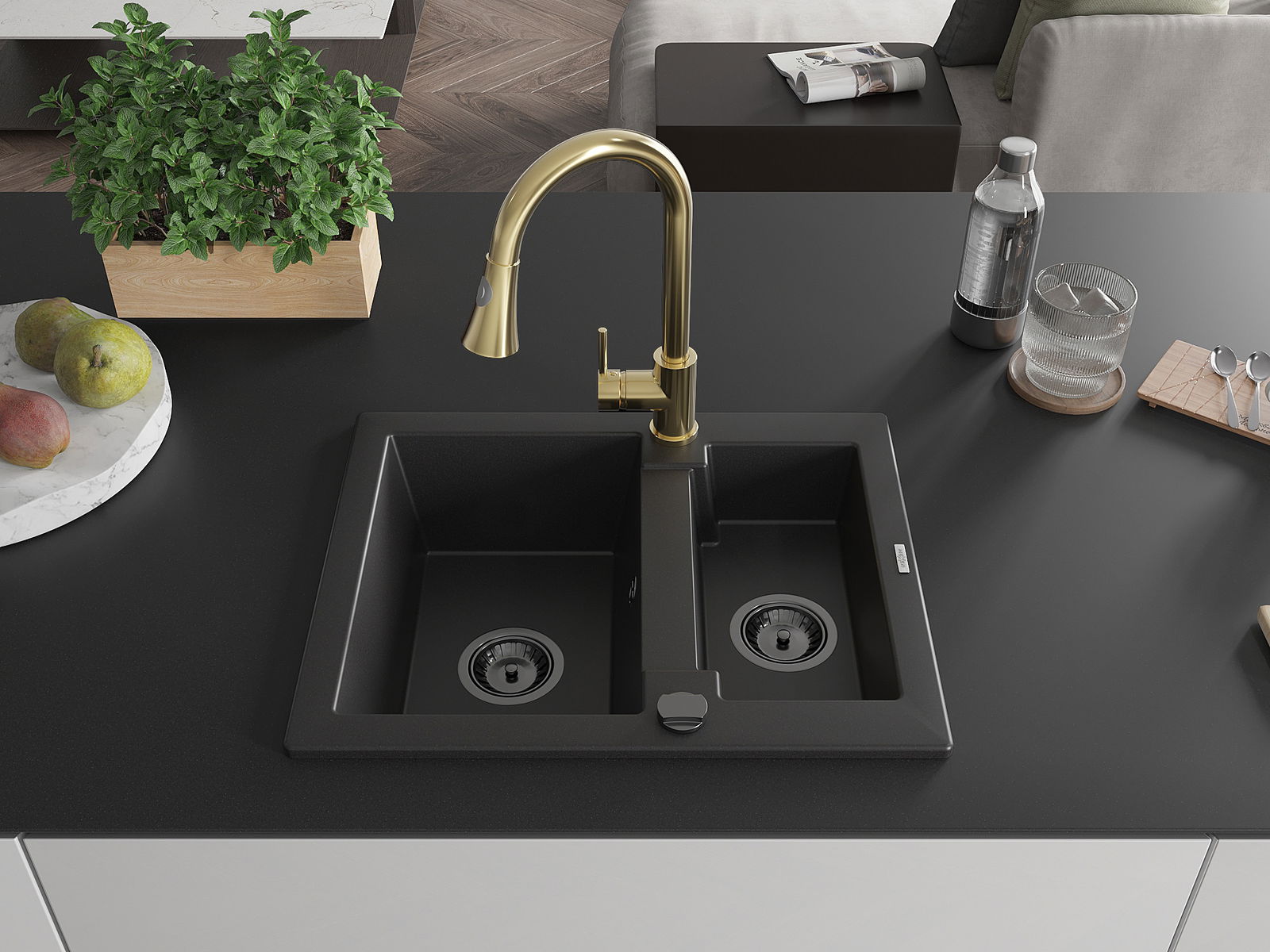 Мивката е направена от висококачествен гранит. Това е елегантно и най -вече практично допълнение към всяка кухня, независимо от нейния стил. Висококачествената и гранитна издръжливост осигуряват много години употреба.