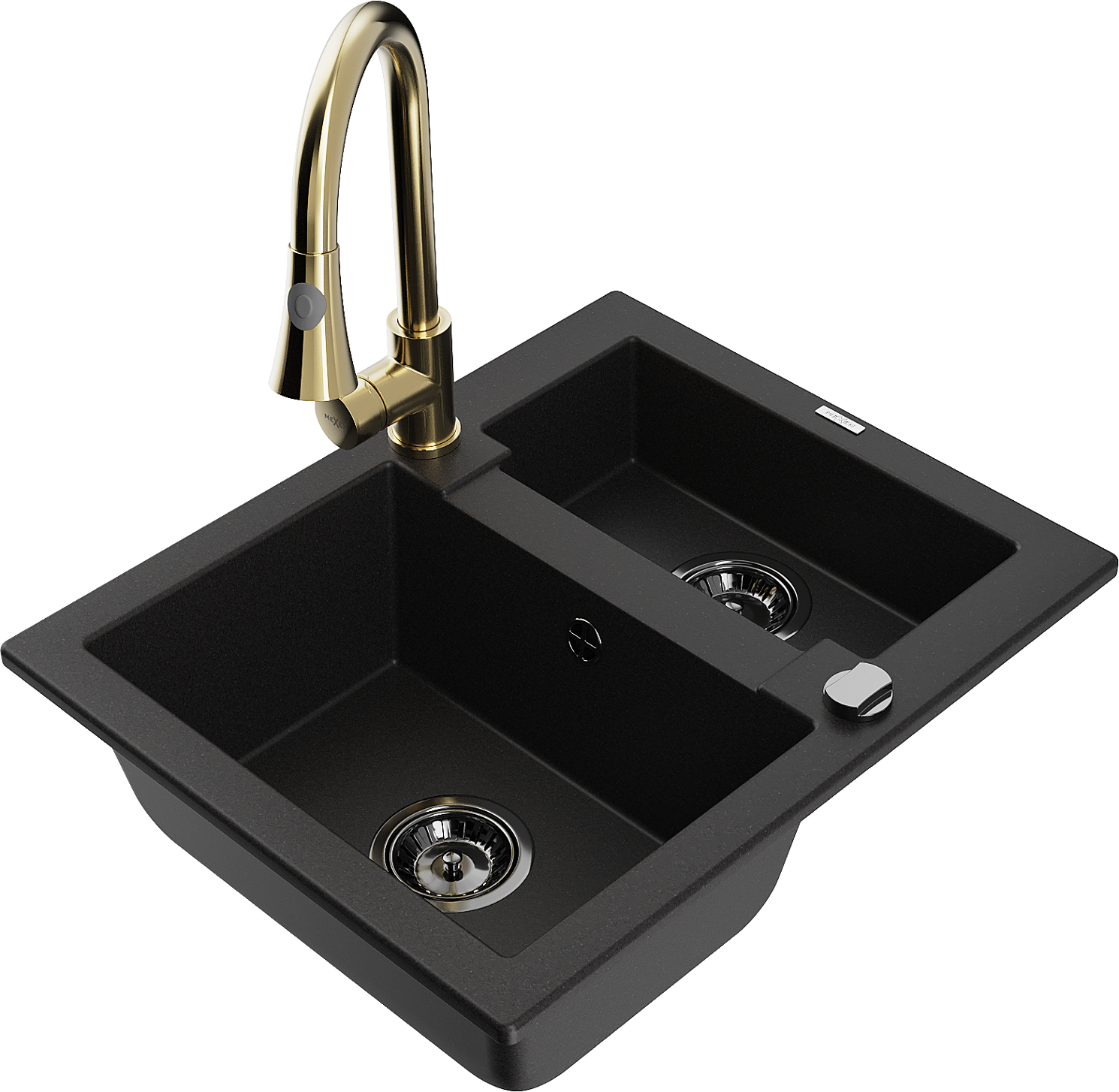 Mexen Carlos гранитна мивка с 1,5 камери с кухненски смесител Elia, черен - 6518-77-670101-50-B