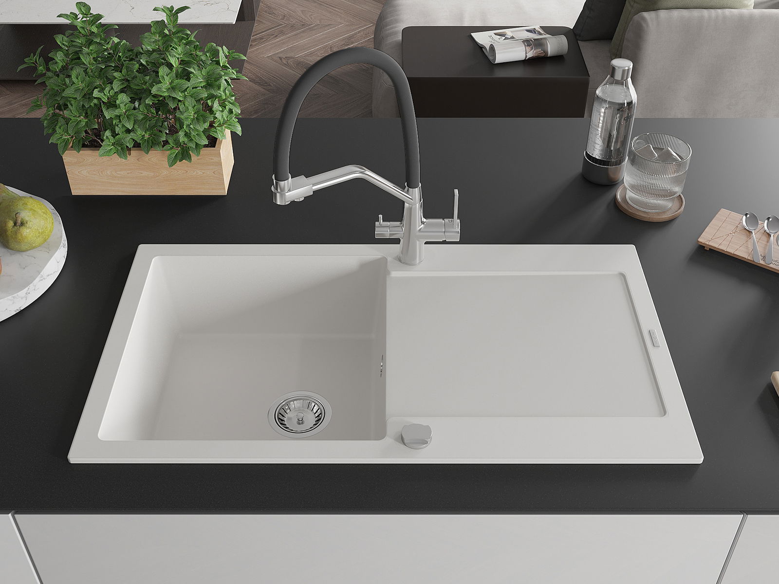 Повърхността на мивката е устойчива на петна и обезцветяване, благодарение на които е лесно да се почиства и запазва цвета си за дълго време. Естетически и практически допълващи всяка кухня.