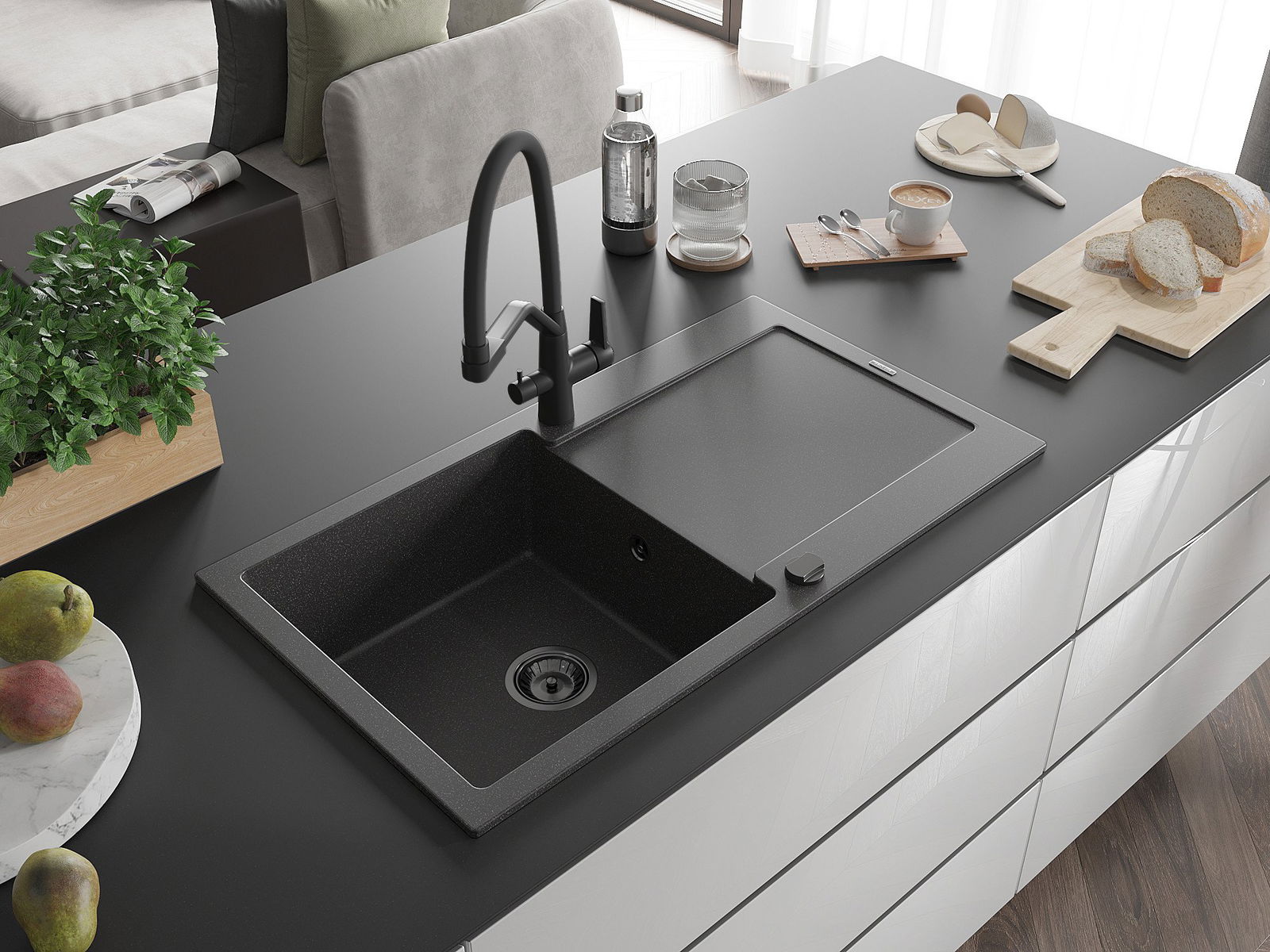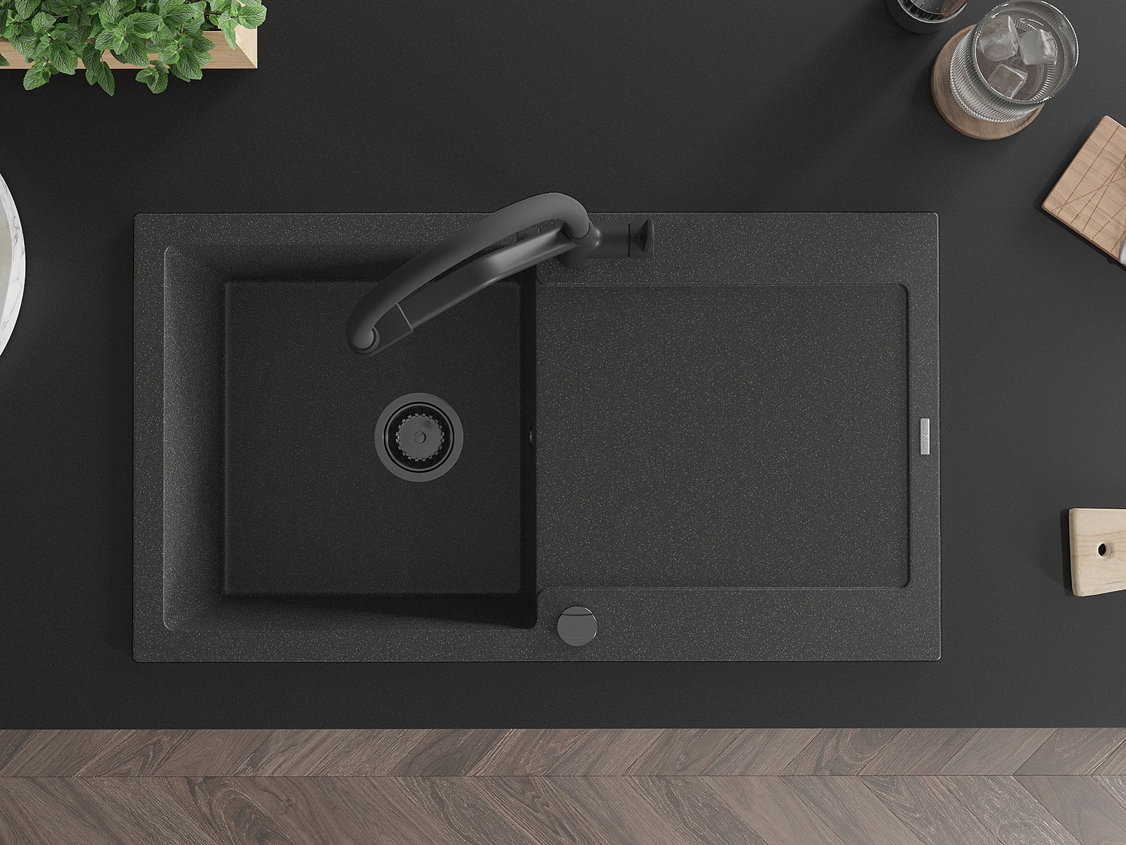 Мивката е направена от висококачествен гранит. Това е елегантно и най -вече практично допълнение към всяка кухня, независимо от нейния стил. Висококачествената и гранитна издръжливост осигуряват много години употреба.