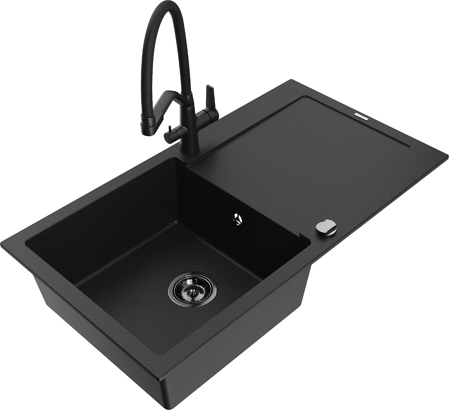Mexen Leo гранитна мивка с 1 корито и отцедник и кухненски смесител Duo, черен - 6501-77-671701-70-B