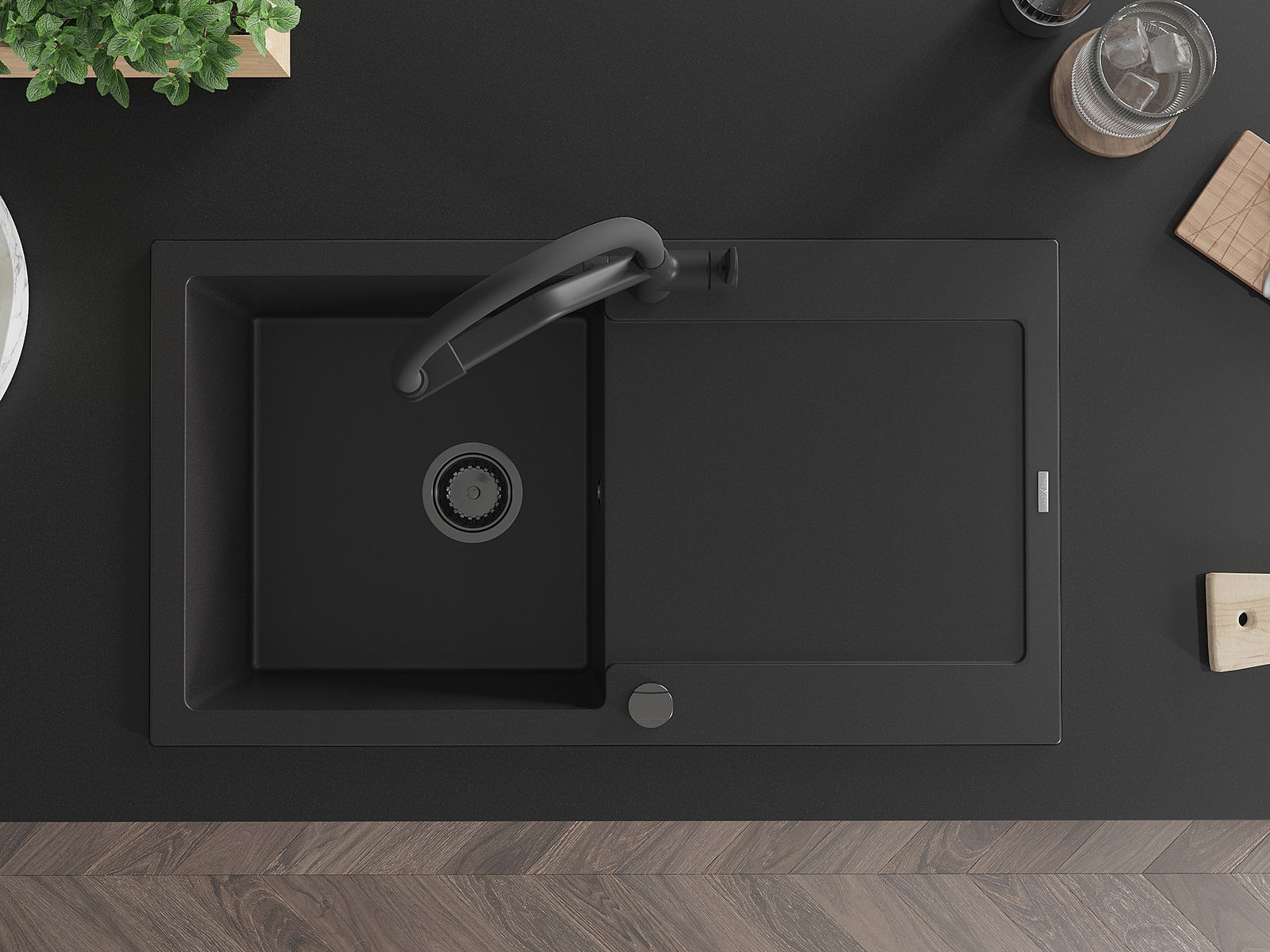 Мивката е направена от висококачествен гранит. Това е елегантно и най -вече практично допълнение към всяка кухня, независимо от нейния стил. Висококачествената и гранитна издръжливост осигуряват много години употреба.