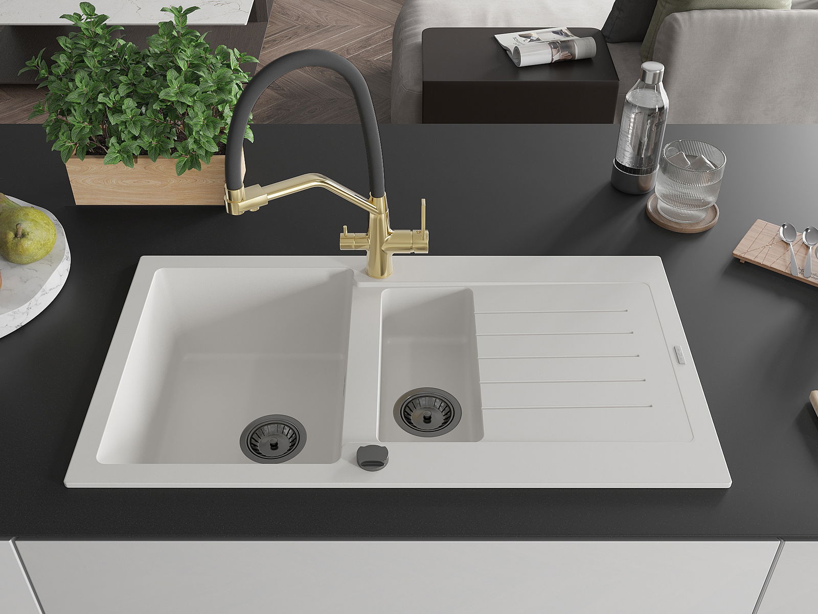 Повърхността на мивката е устойчива на петна и обезцветяване, благодарение на които е лесно да се почиства и запазва цвета си за дълго време. Естетически и практически допълващи всяка кухня.