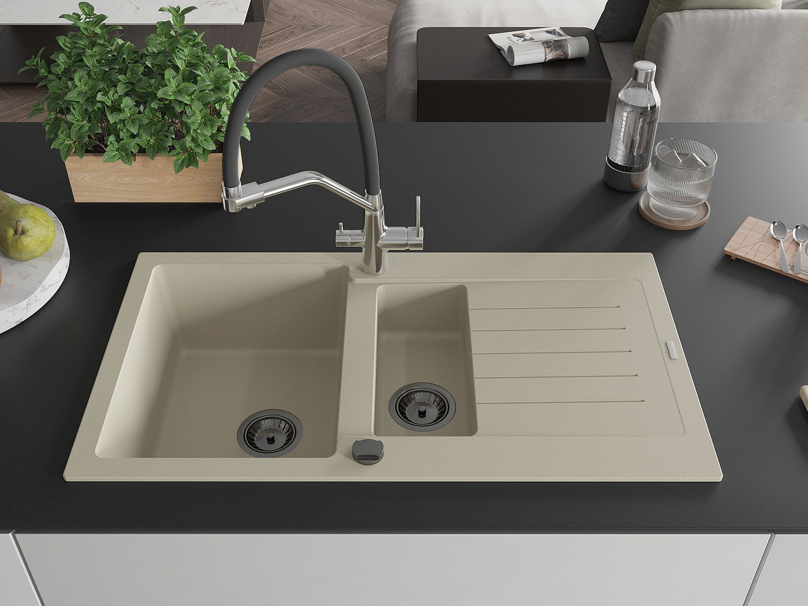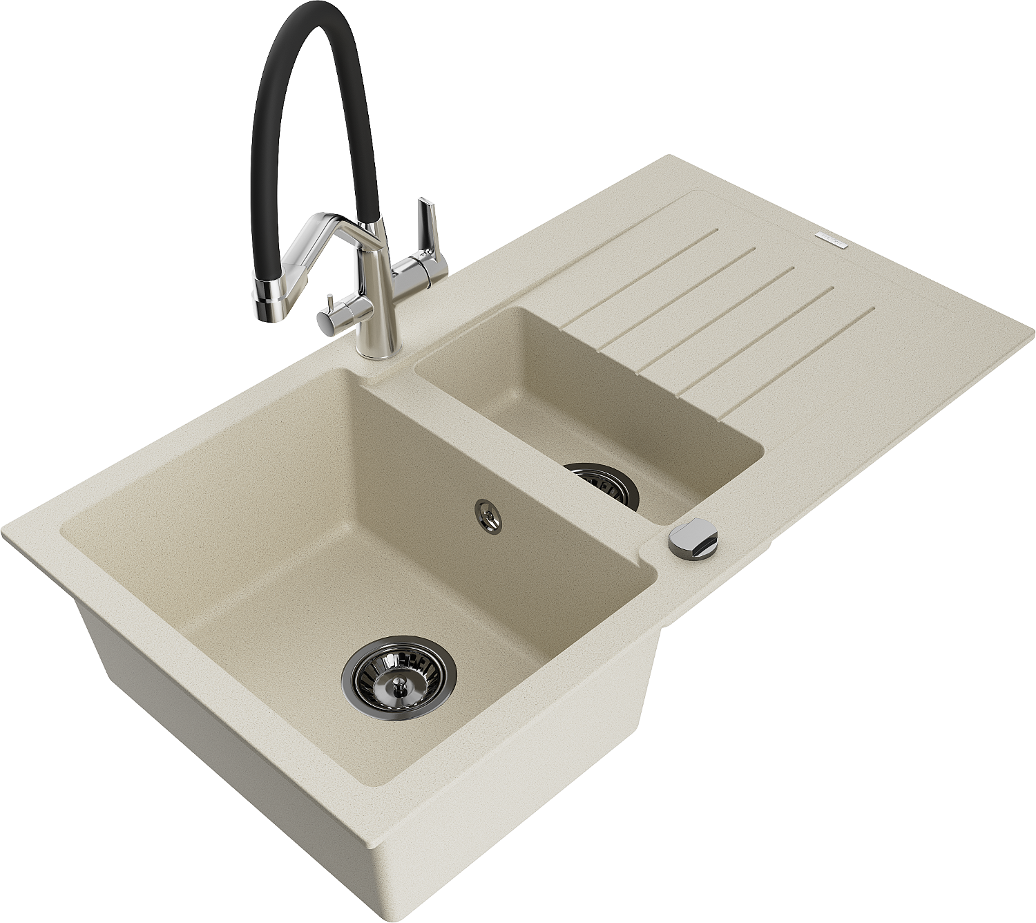 Mexen Matias гранитна мивка 1,5 камери с отцедник и кухненски смесител Duo, бежов - 6502-69-671701-07-B