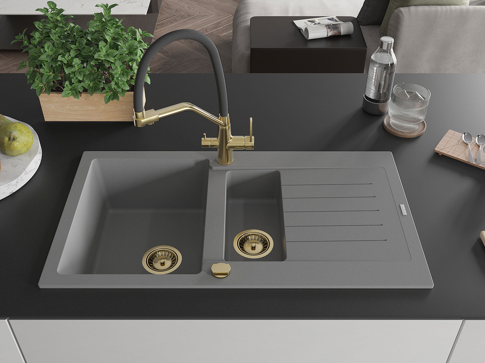 Мивката е направена от висококачествен гранит. Това е елегантно и най -вече практично допълнение към всяка кухня, независимо от нейния стил. Висококачествената и гранитна издръжливост осигуряват много години употреба.