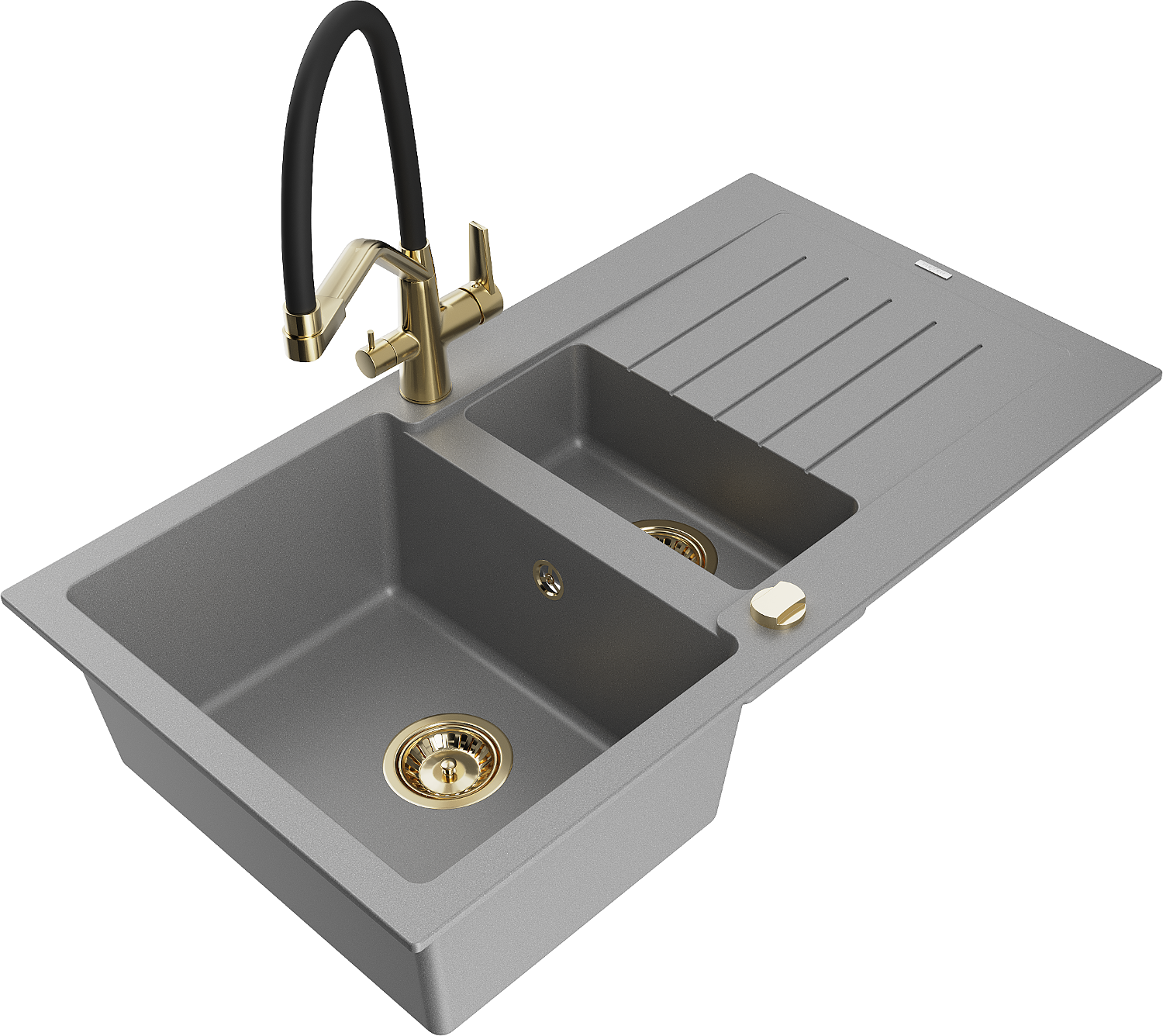Mexen Matias гранитна мивка с 1,5 камери, с отцедник и кухня смесител Duo, сив - 6502-71-671701-57-G
