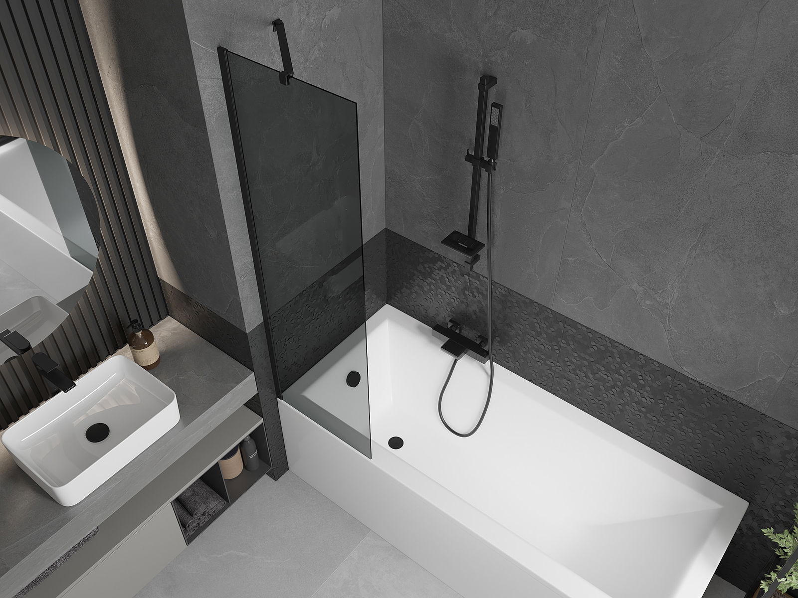 Mexen Next единично крило за вана 50 x 150 см, графит, черен - 895-050-000-00-40-70
