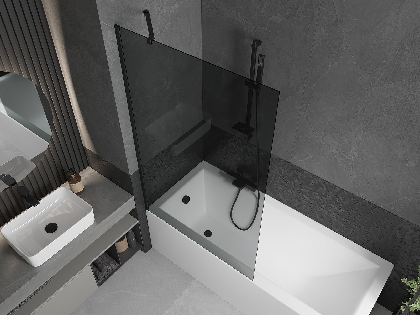 Mexen Next параван за вана с 1 крило 100 x 150 cm, графит, черен - 895-100-000-00-40-70