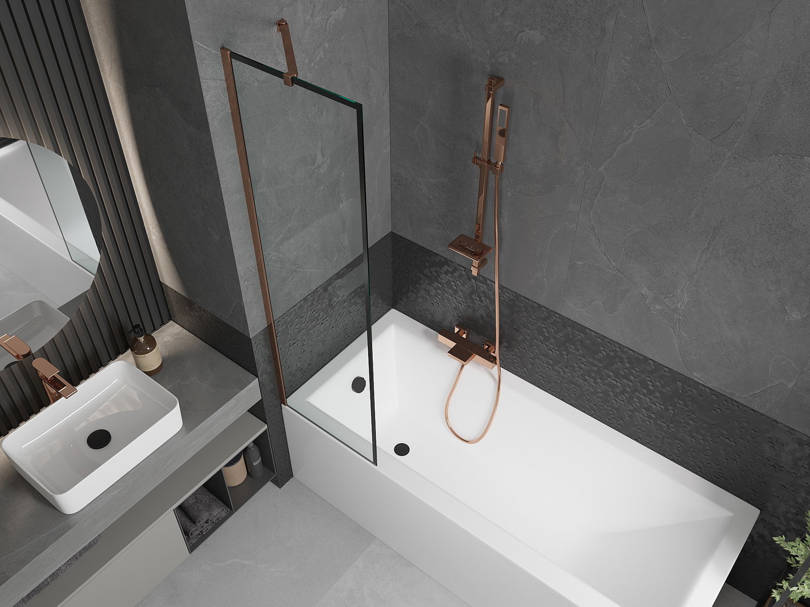 Mexen Next душ параван 1-крилов 50 x 150 см, черна рамка, розово злато - 895-050-000-00-70-60