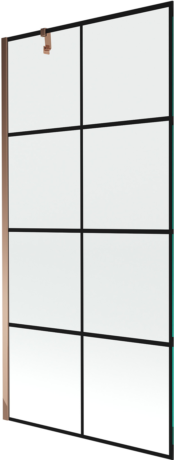 Mexen Next вана екран с 1 крило 90 x 150 см, черна мрежа, розово злато - 895-090-000-00-77-60